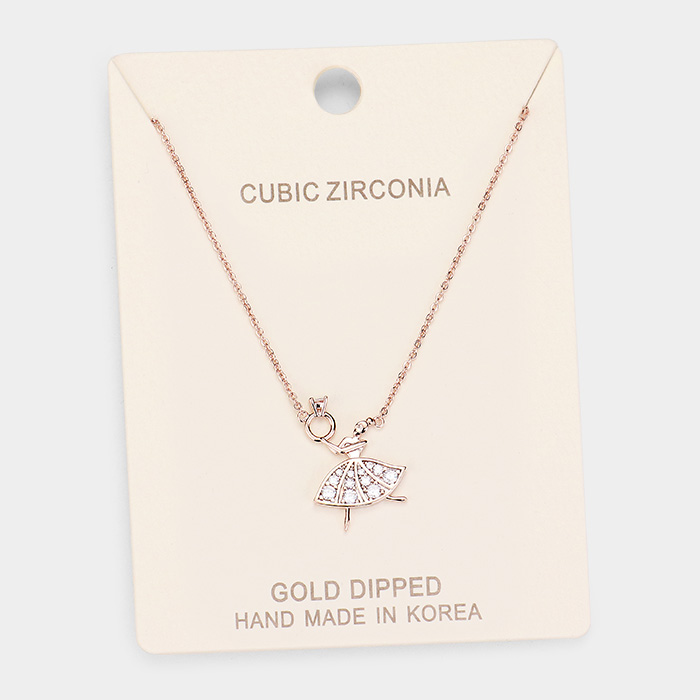 Gold Dipped Cubic Zirconia Ballerina Pendant Necklace
