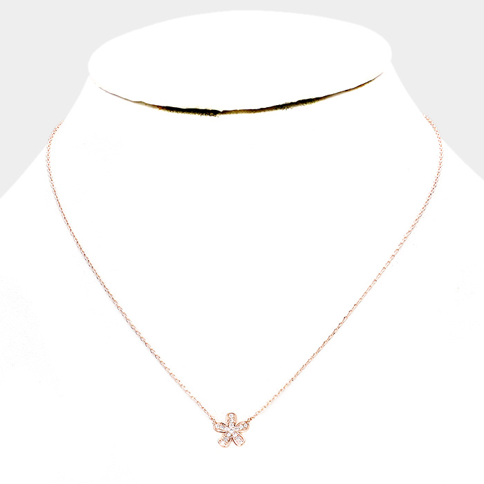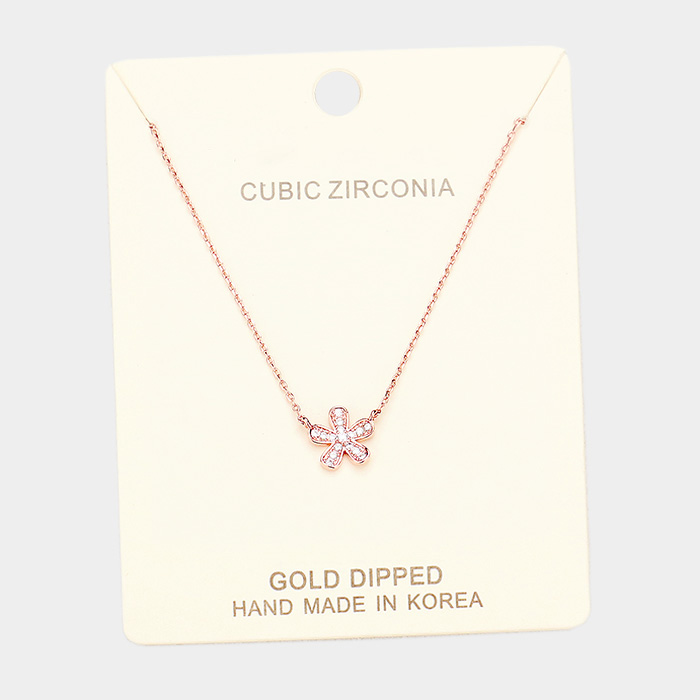 Gold Dipped Cubic Zirconia Flower Pendant Y Necklace