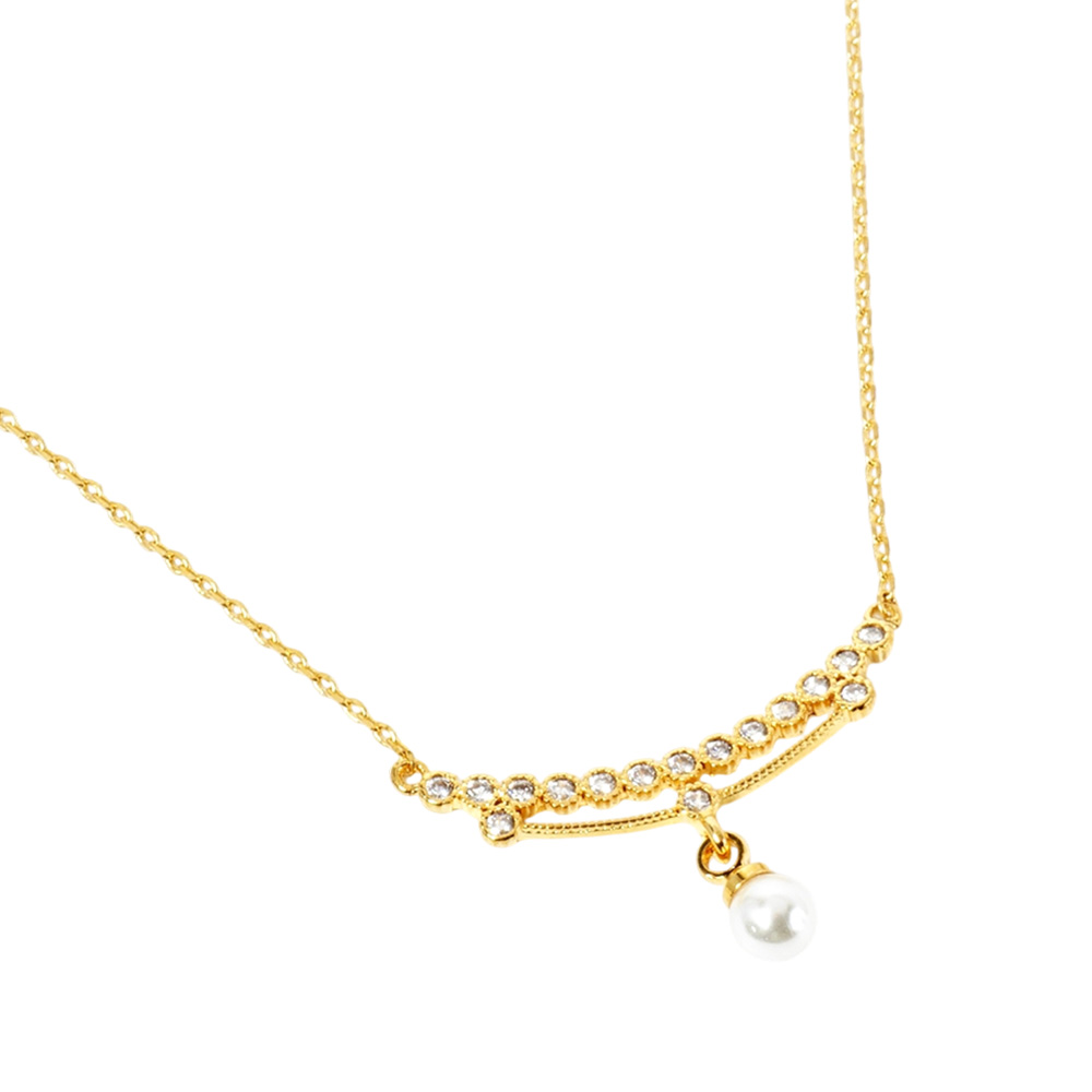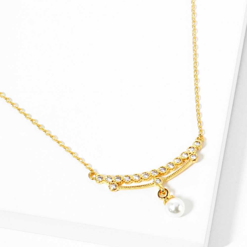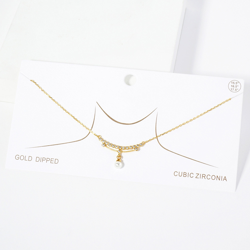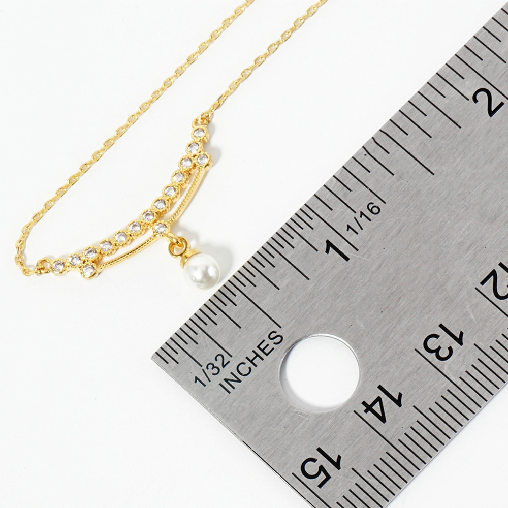 Gold Dipped Cubic Zirconia Pearl Pendant Necklace