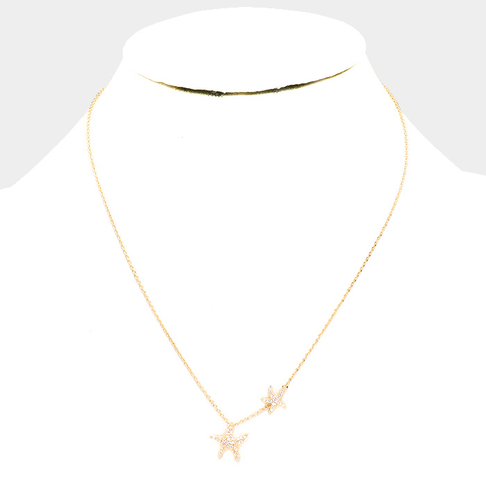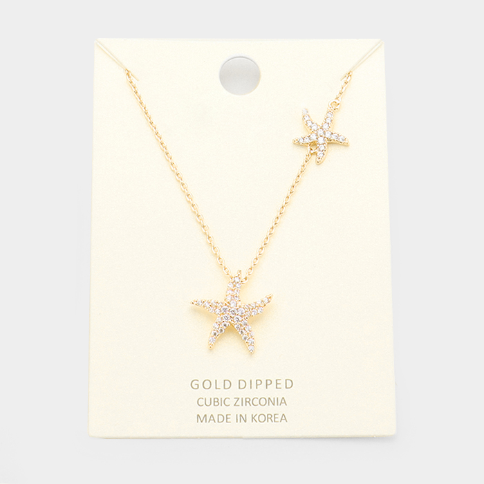 Gold Dipped Cubic Zirconia Starfish Pendant Necklace