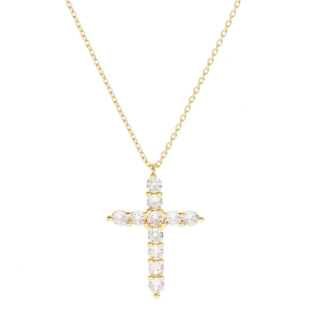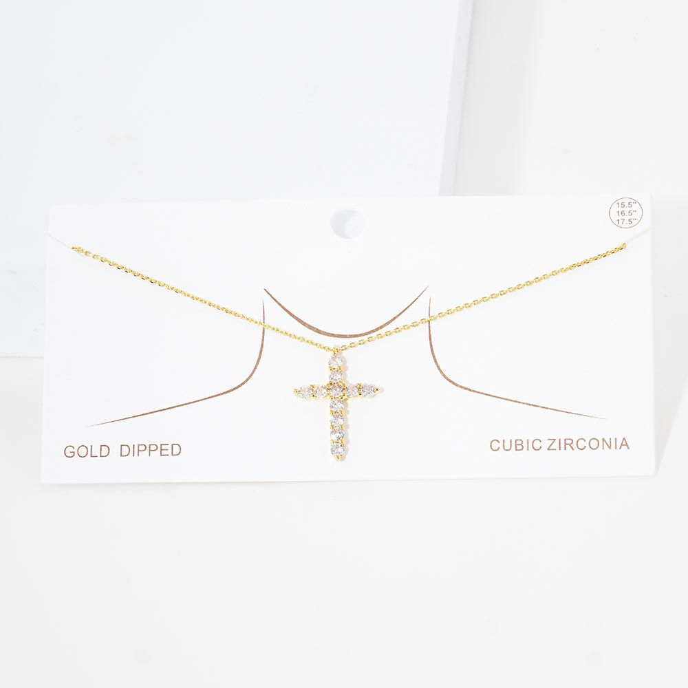 14K Gold Dipped Baguette Cut CZ Stone Cross Pendant Necklace