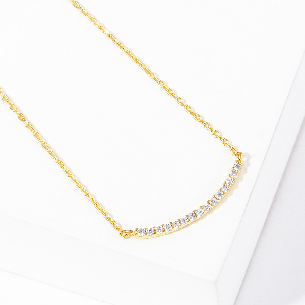 White Gold Dipped CZ Embellished Curved Metal Pendant Necklace