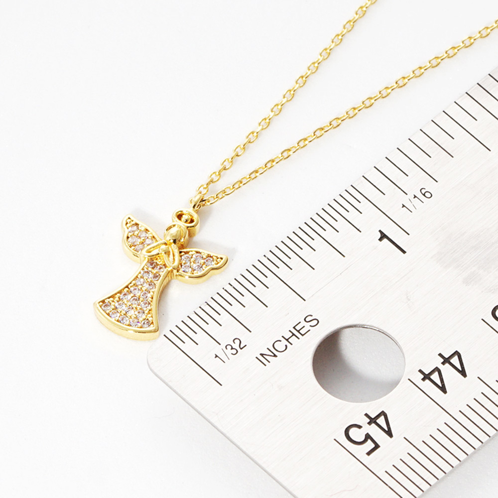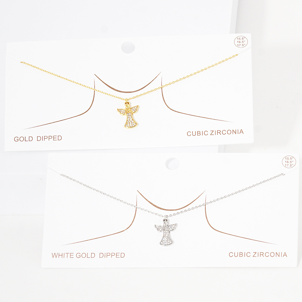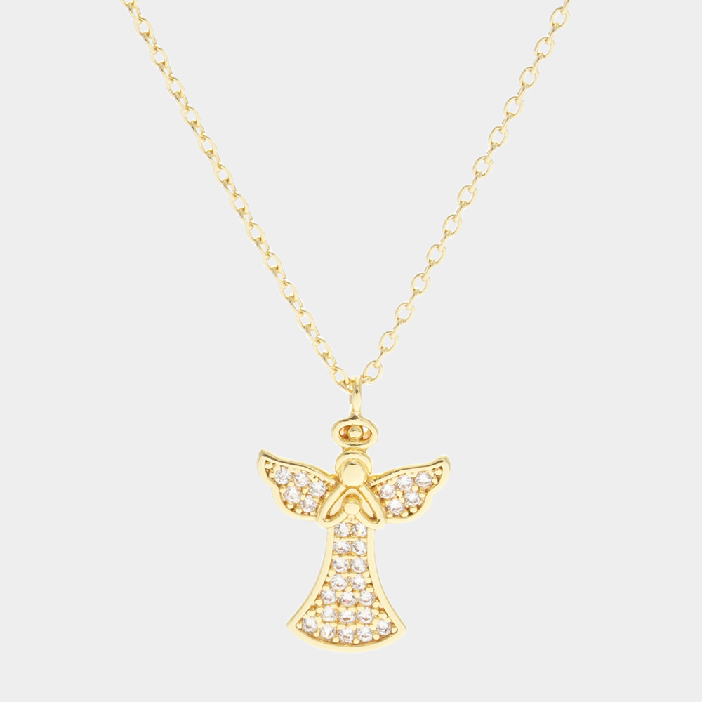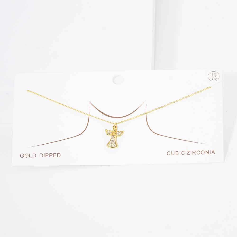 Gold Dipped CZ Embellished Metal Angel Pendant Necklace