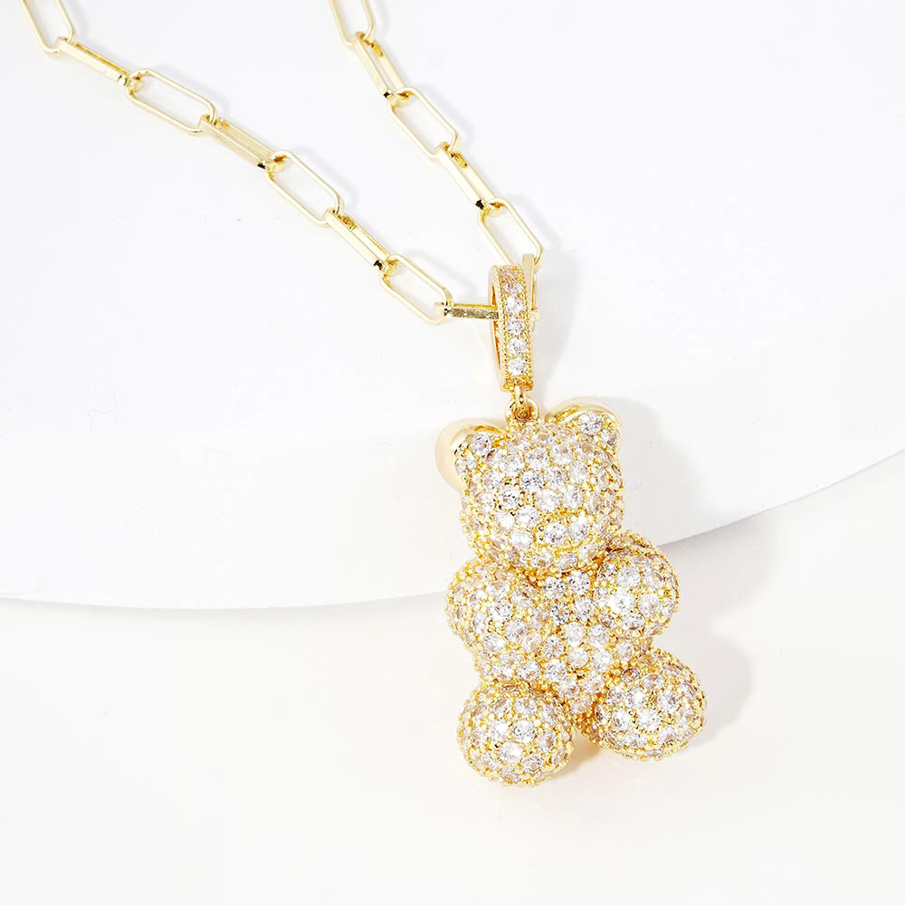 Gold Dipped CZ Embellished Metal Bear Pendant Necklace
