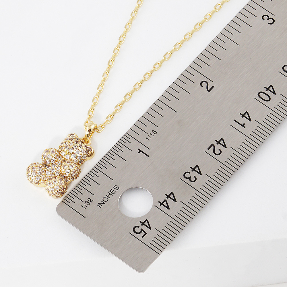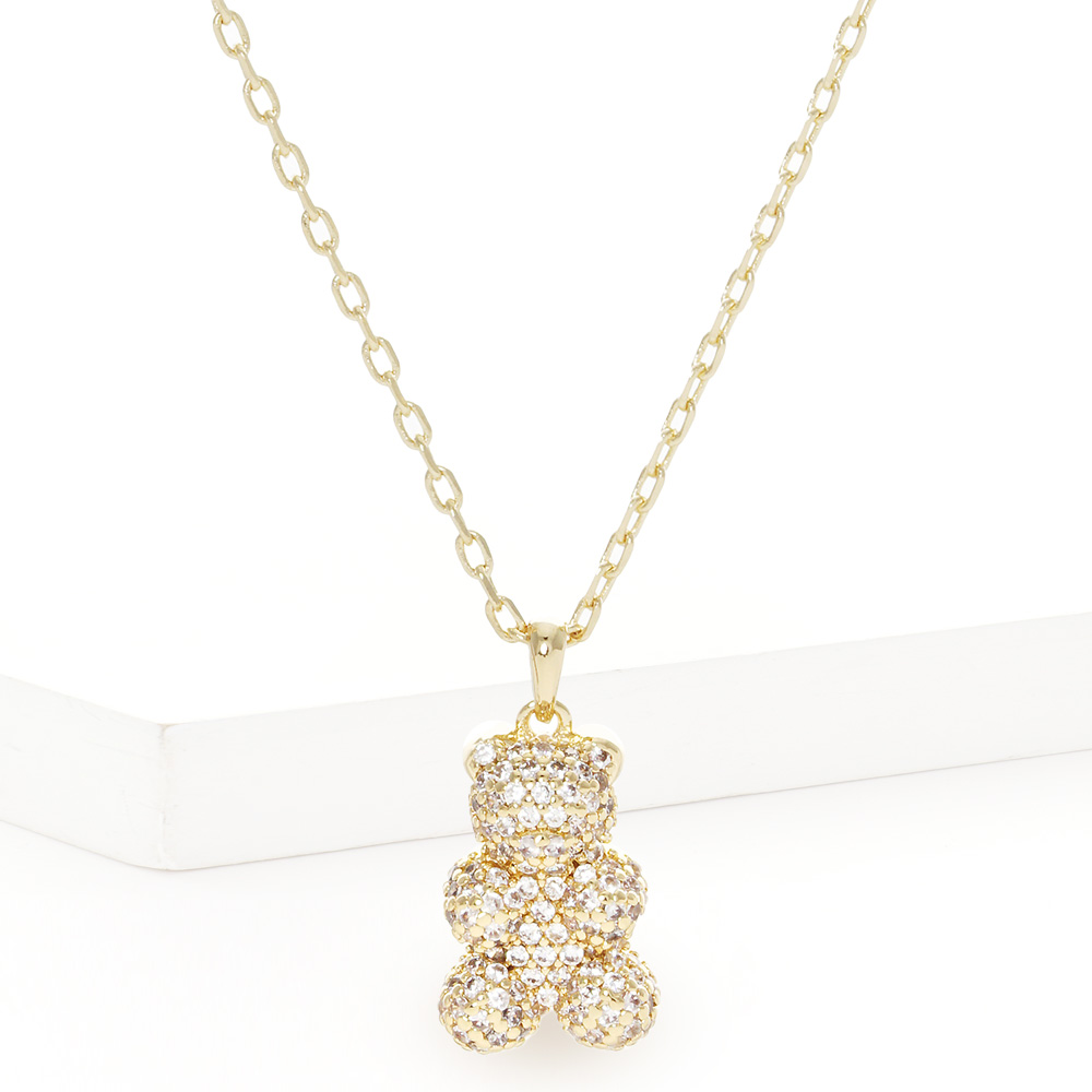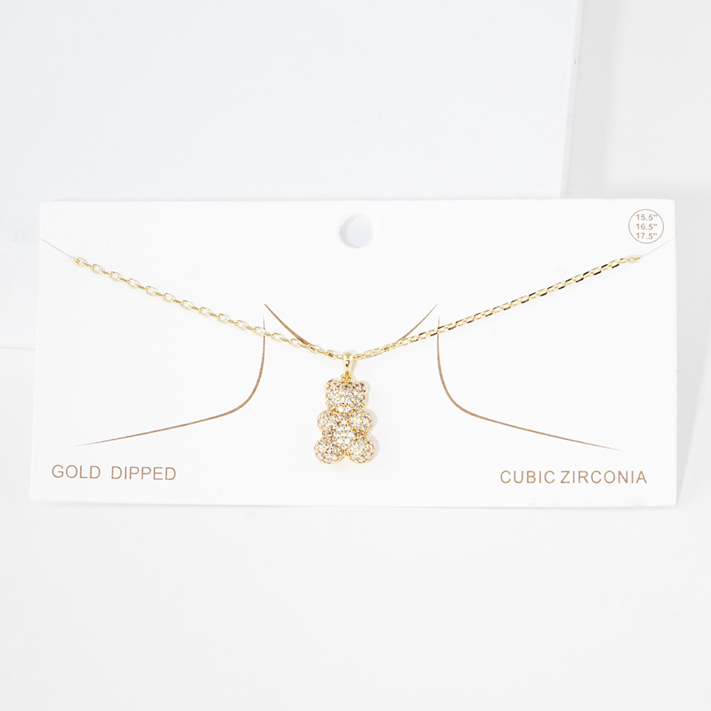 Gold Dipped CZ Embellished Metal Bear Pendant Necklace