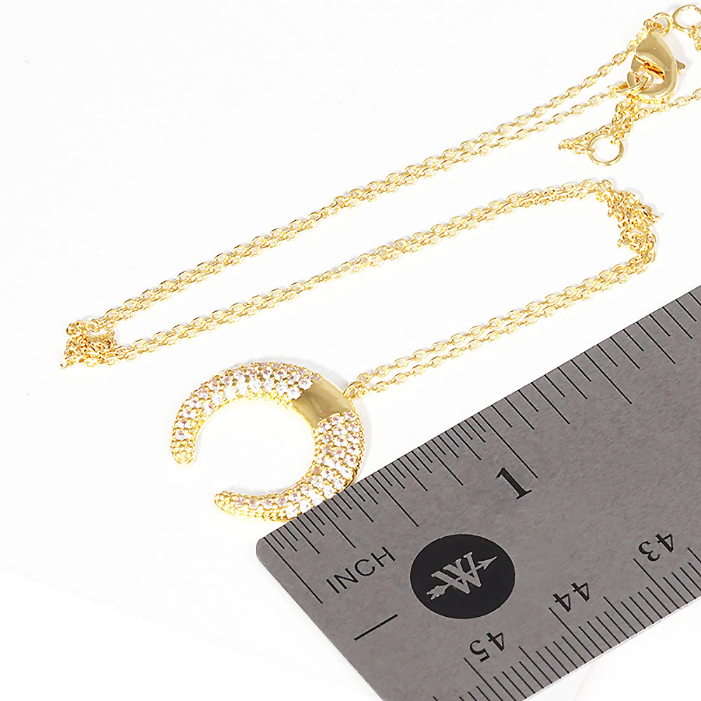 Gold Dipped CZ Embellished Metal Horn Pendant Necklace