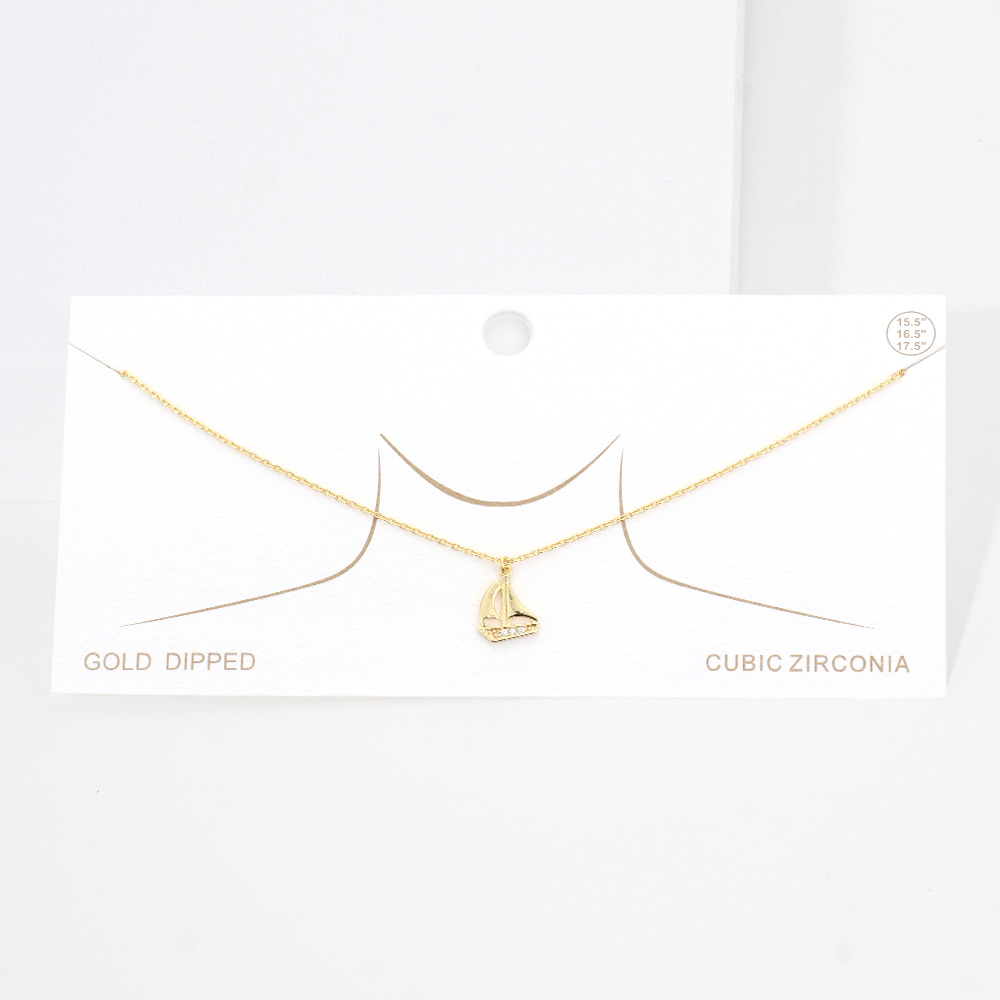 Gold Dipped CZ Embellished Sailboat Pendant Necklace