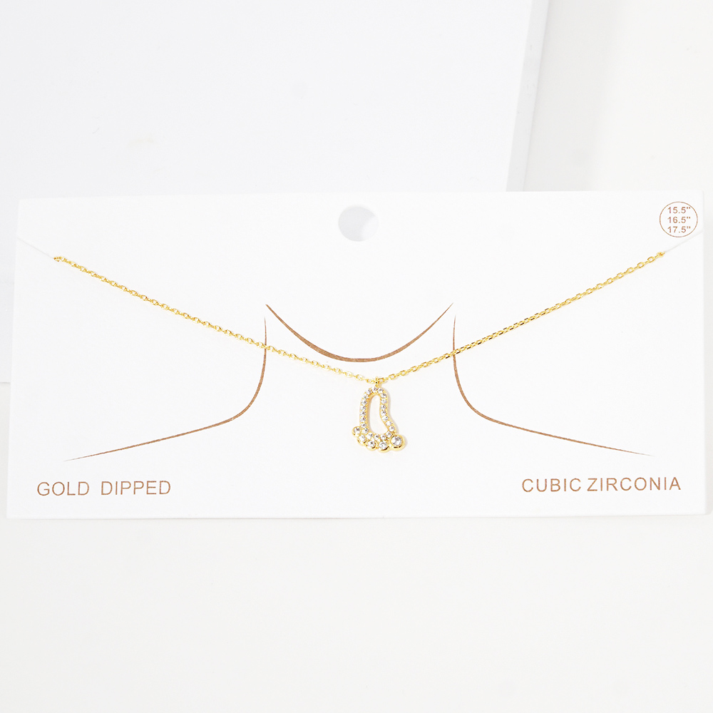 Gold Dipped CZ Footprint Pendant Necklace