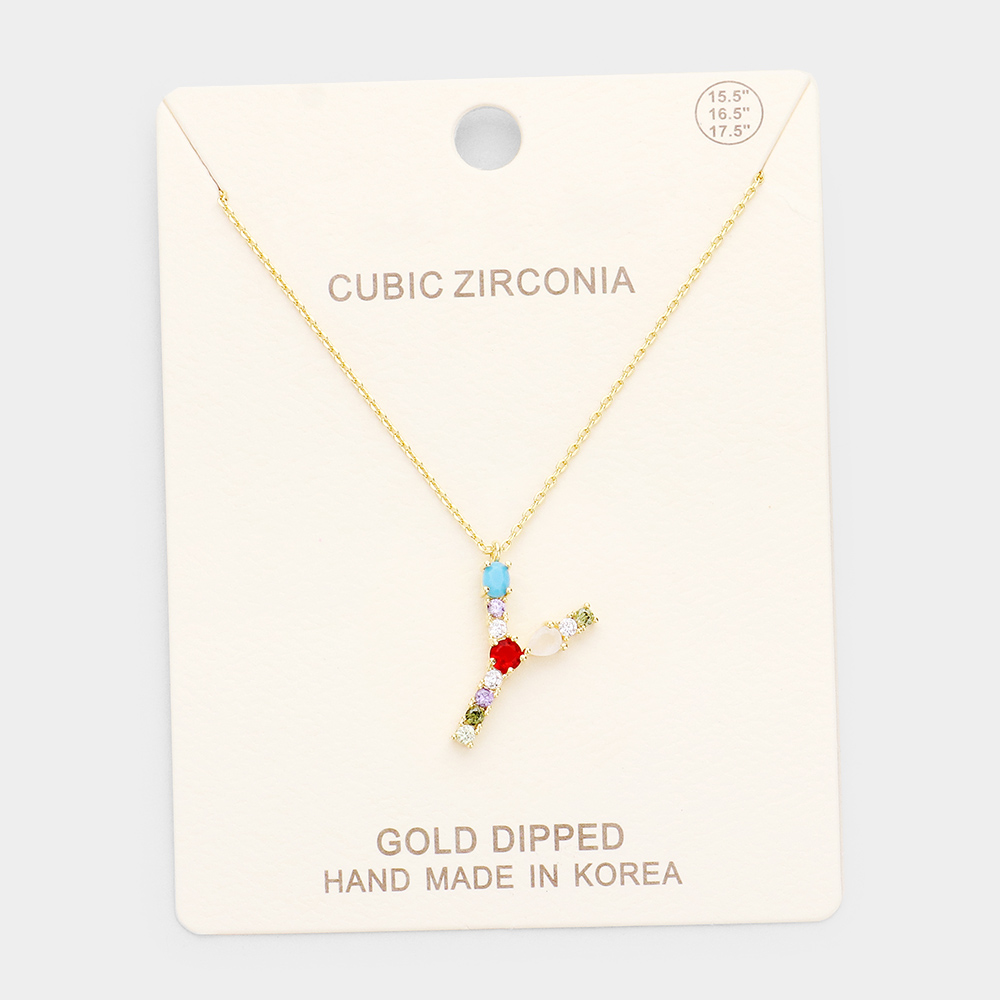 Details • Necklace Size : 15.5" + 2" L • Pendant Size : 0.5" X 0.75" • Letter "Y" • Lead and Nickel Compliant • Made In Korea • Gold Dipped • CZ Cubic Zirconia