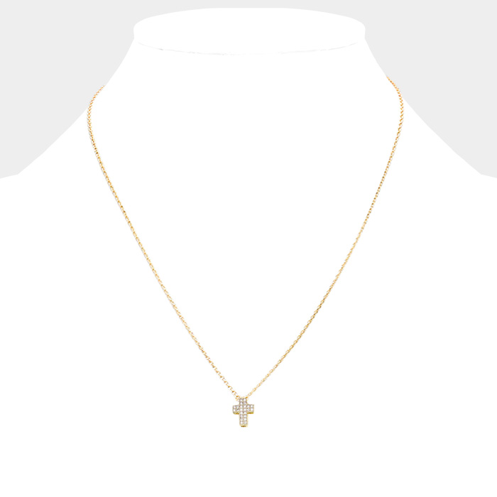 Details • Necklace Size : 15.5" + 2" L • Pendant Size :0.25" x 0.3" • Classic cross pendant necklace adorned with sparkling pave accents on a delicate chain. A meaningful and stylish piece that adds timeless elegance, perfect for everyday wear or special gifting occasions. • Lead and Nickel Compliant • Made In Korea • Gold Dipped • CZ Cubic Zirconia