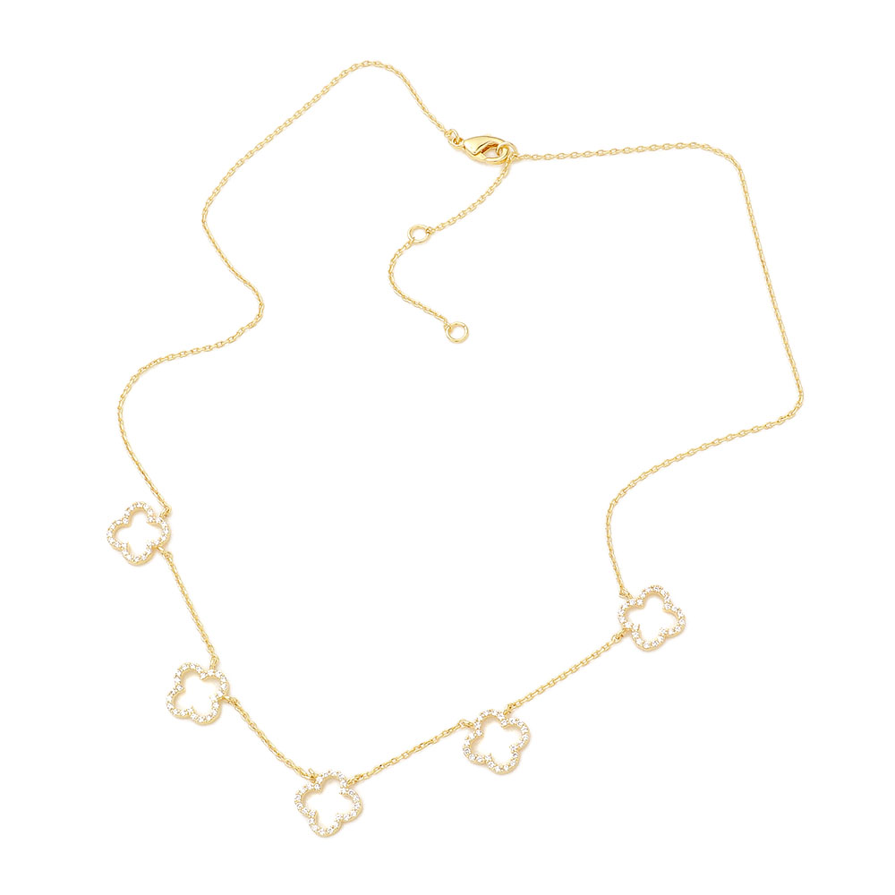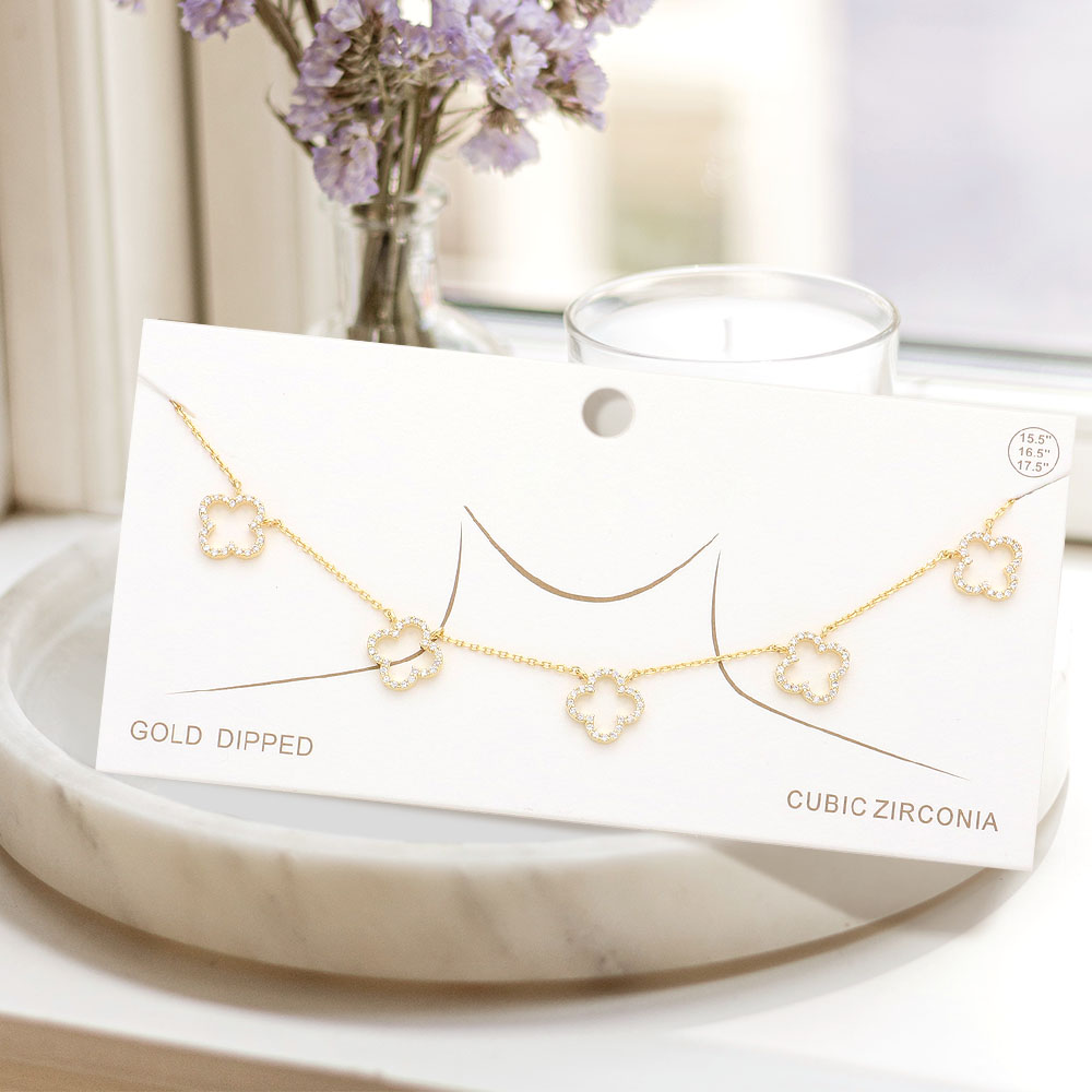 Gold Dipped CZ Quatrefoil Pendant Station Necklace