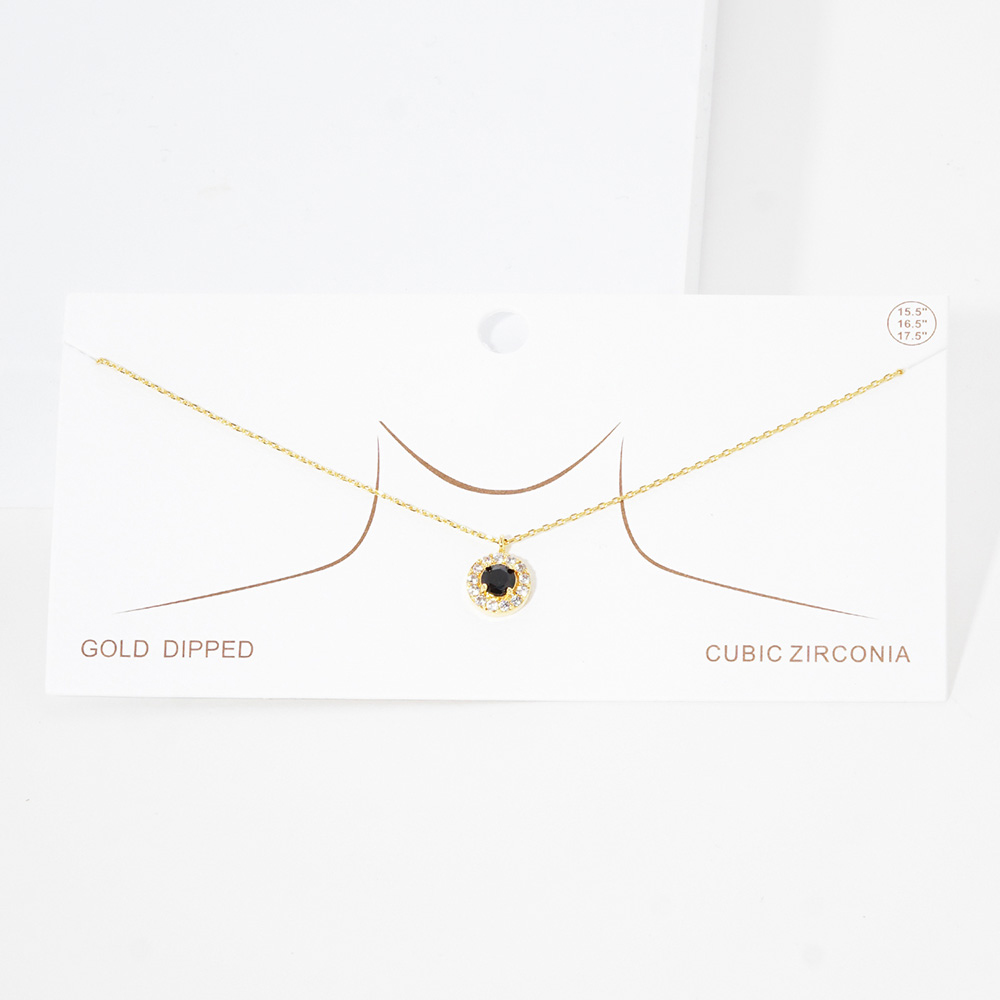 Gold Dipped CZ Round Pendant Necklace