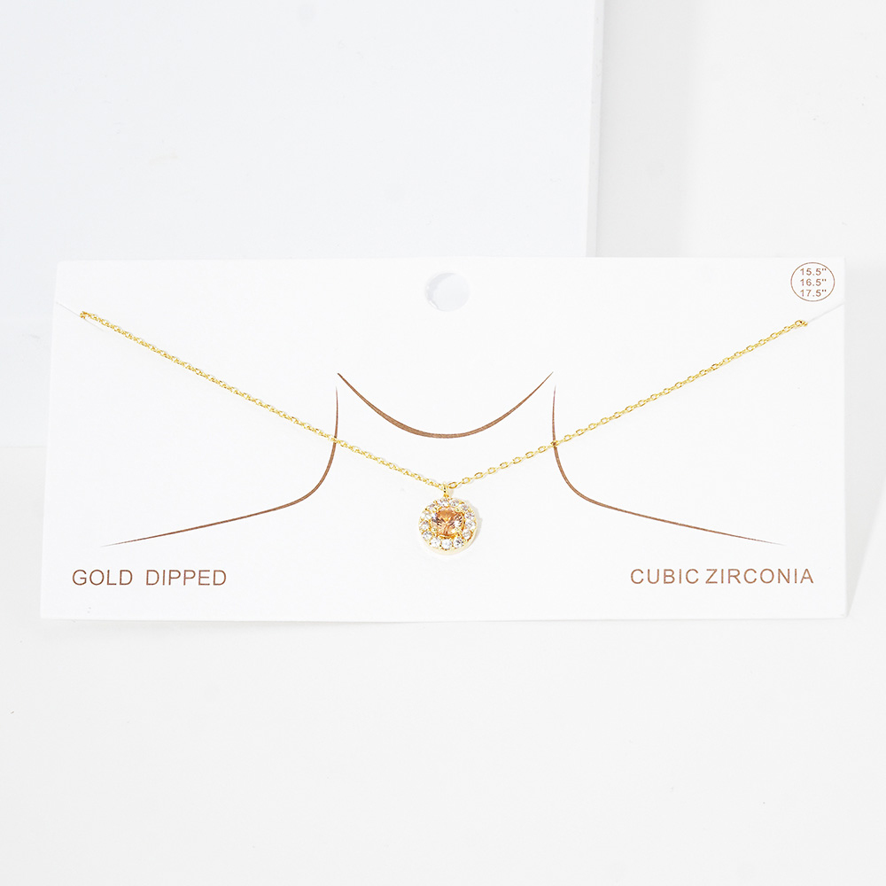 Stainless Steel CZ Stone Rim Pearl Pendant Necklace