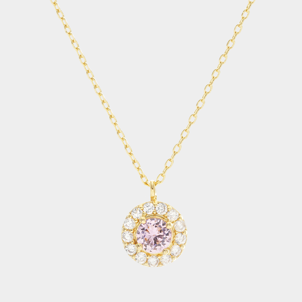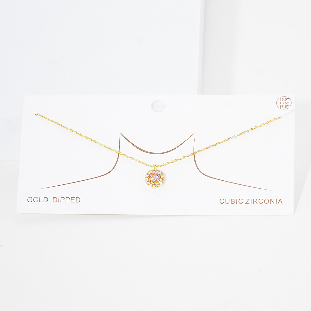 Gold Dipped CZ Round Pendant Necklace