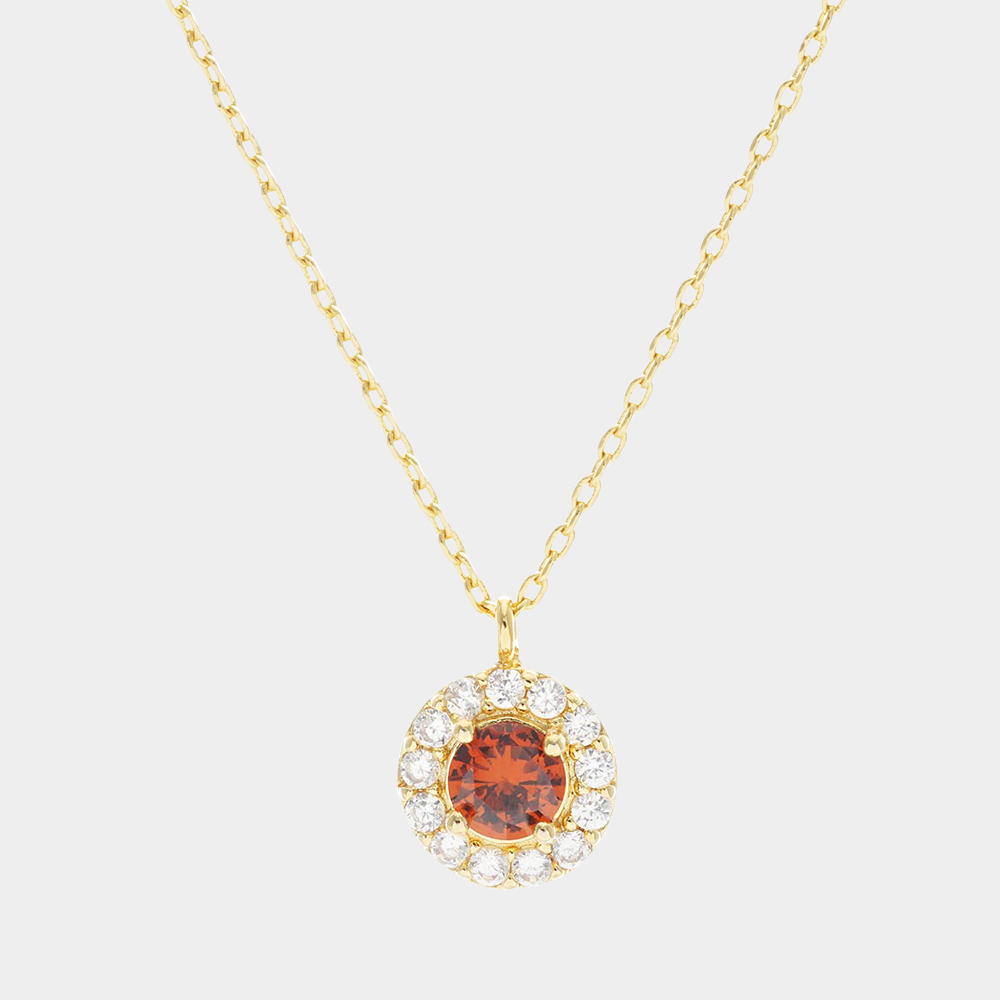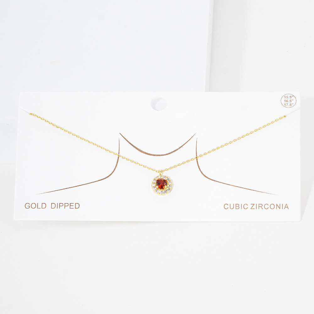 Gold Dipped CZ Round Pendant Necklace