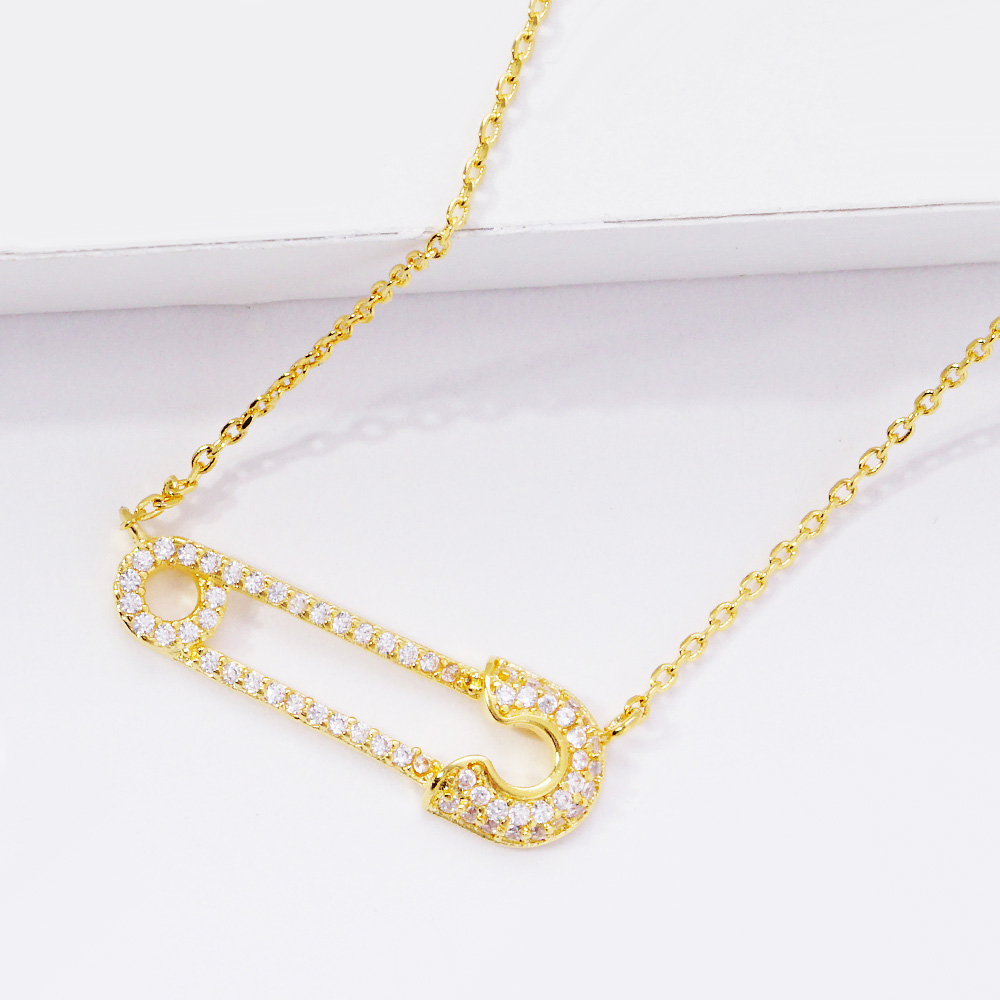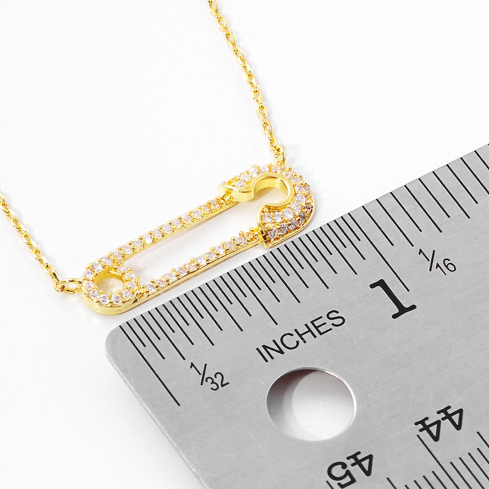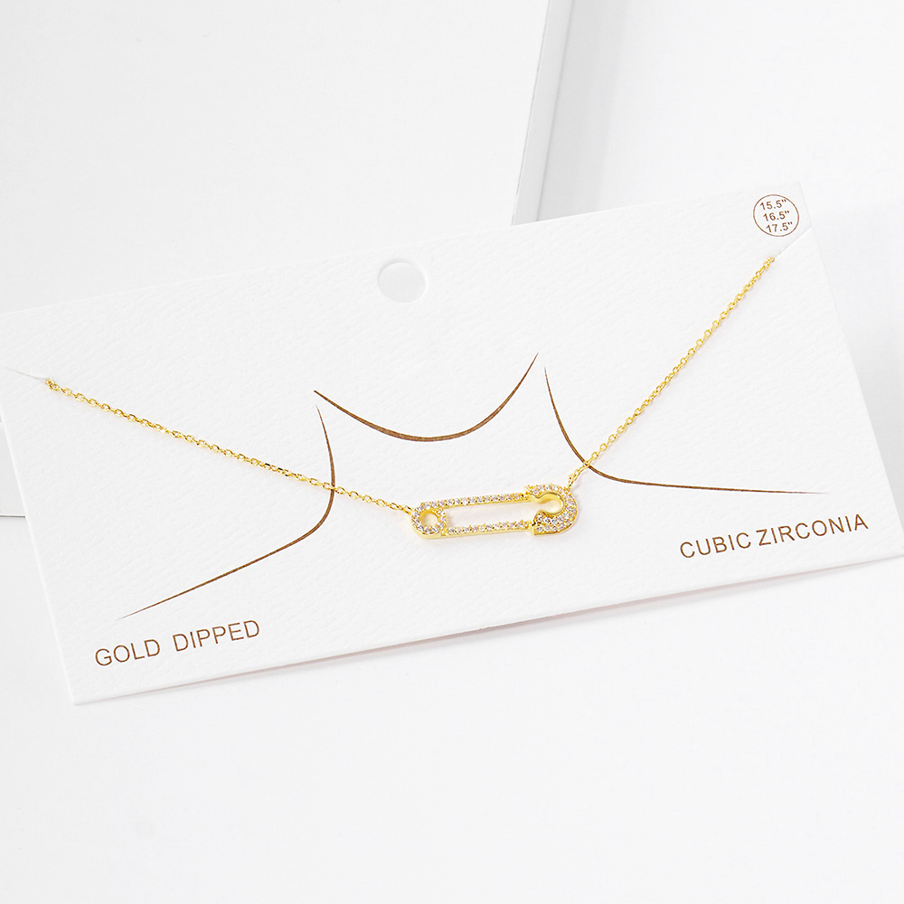 Gold Dipped CZ Safety Pin Pendant Necklace