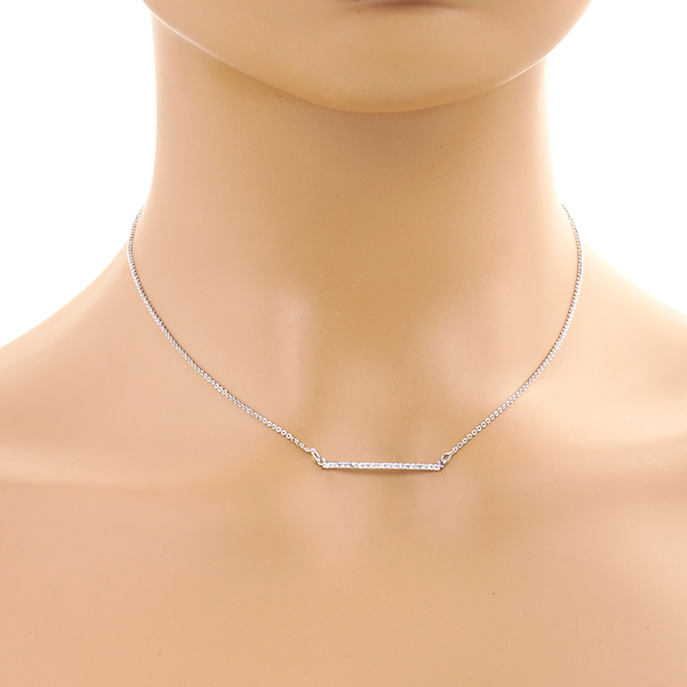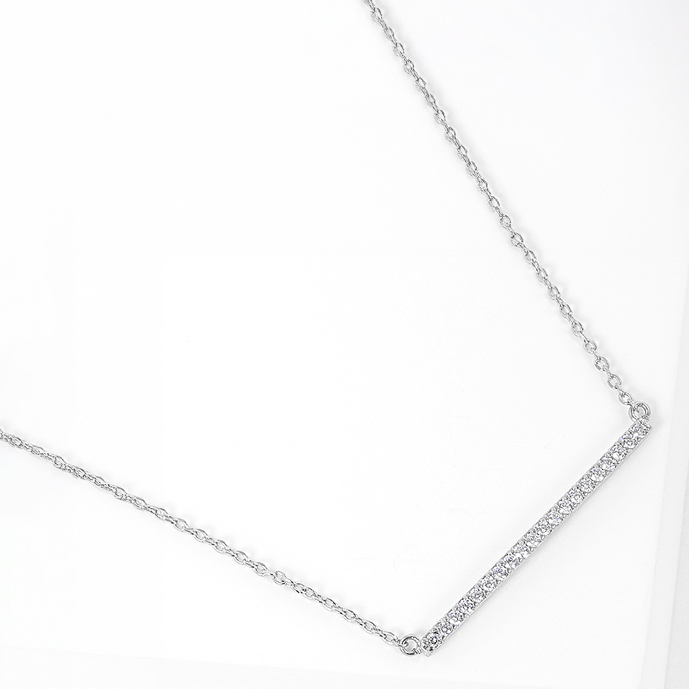 Gold Dipped CZ Stone Bar Pendant Necklace