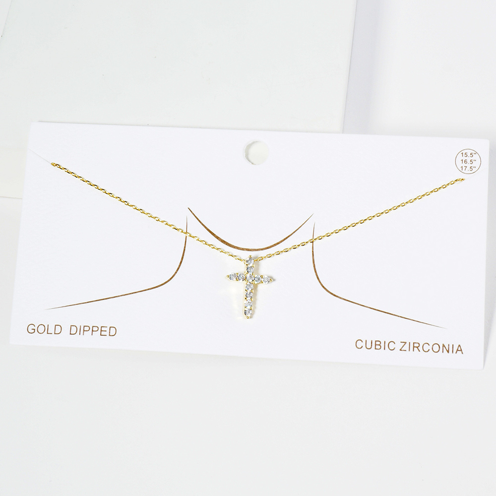 Gold Dipped CZ Stone Embellished Cross Pendant Necklace