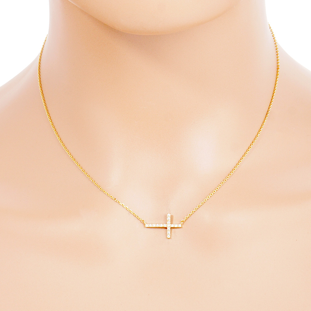 • Elegant sideways cross pendant necklace with delicate chain and sparkling accents. Perfect for everyday wear or as a meaningful gift, this timeless piece blends minimalist design with spiritual symbolism.