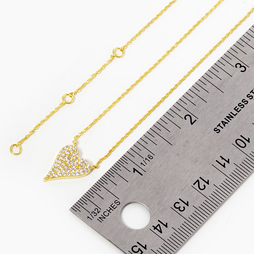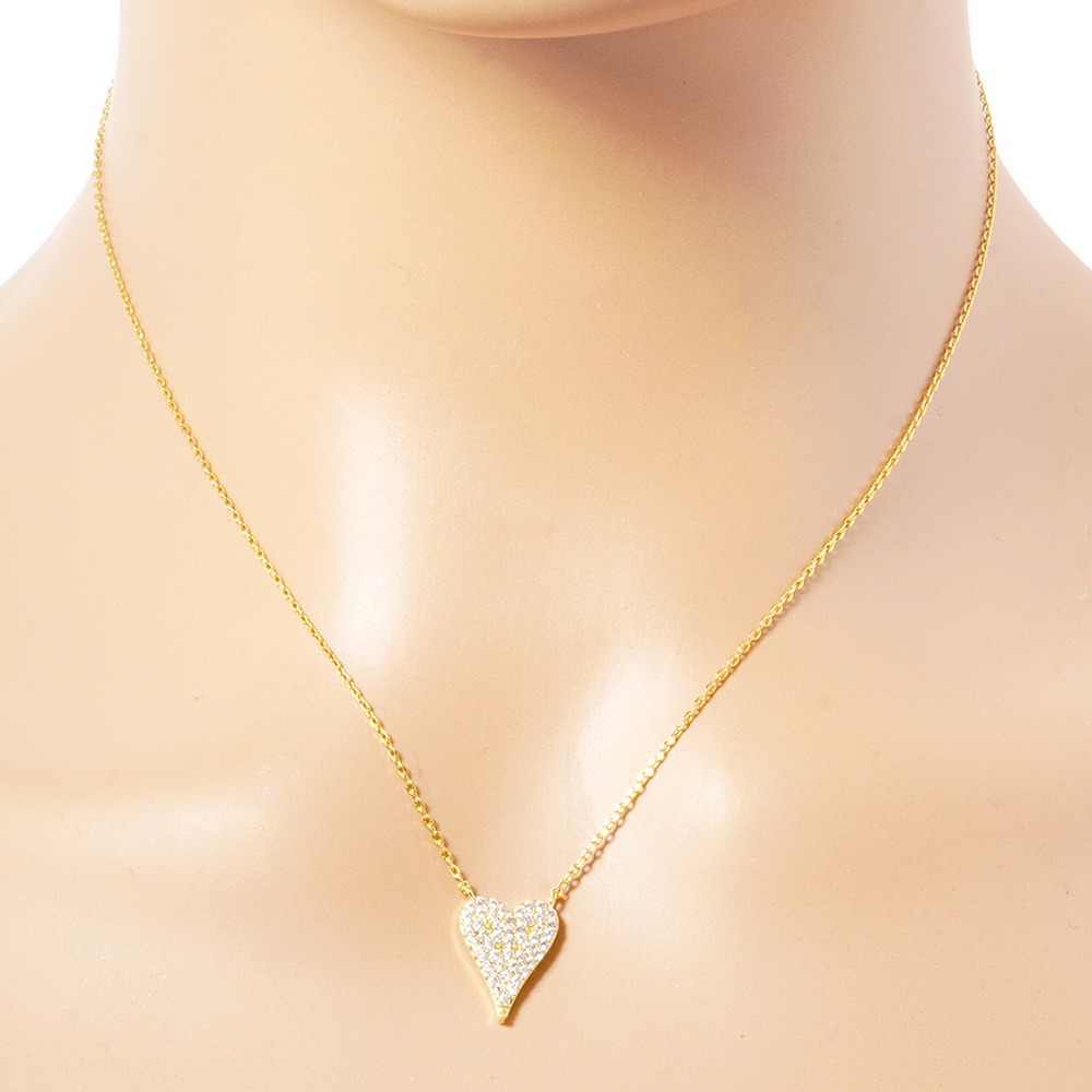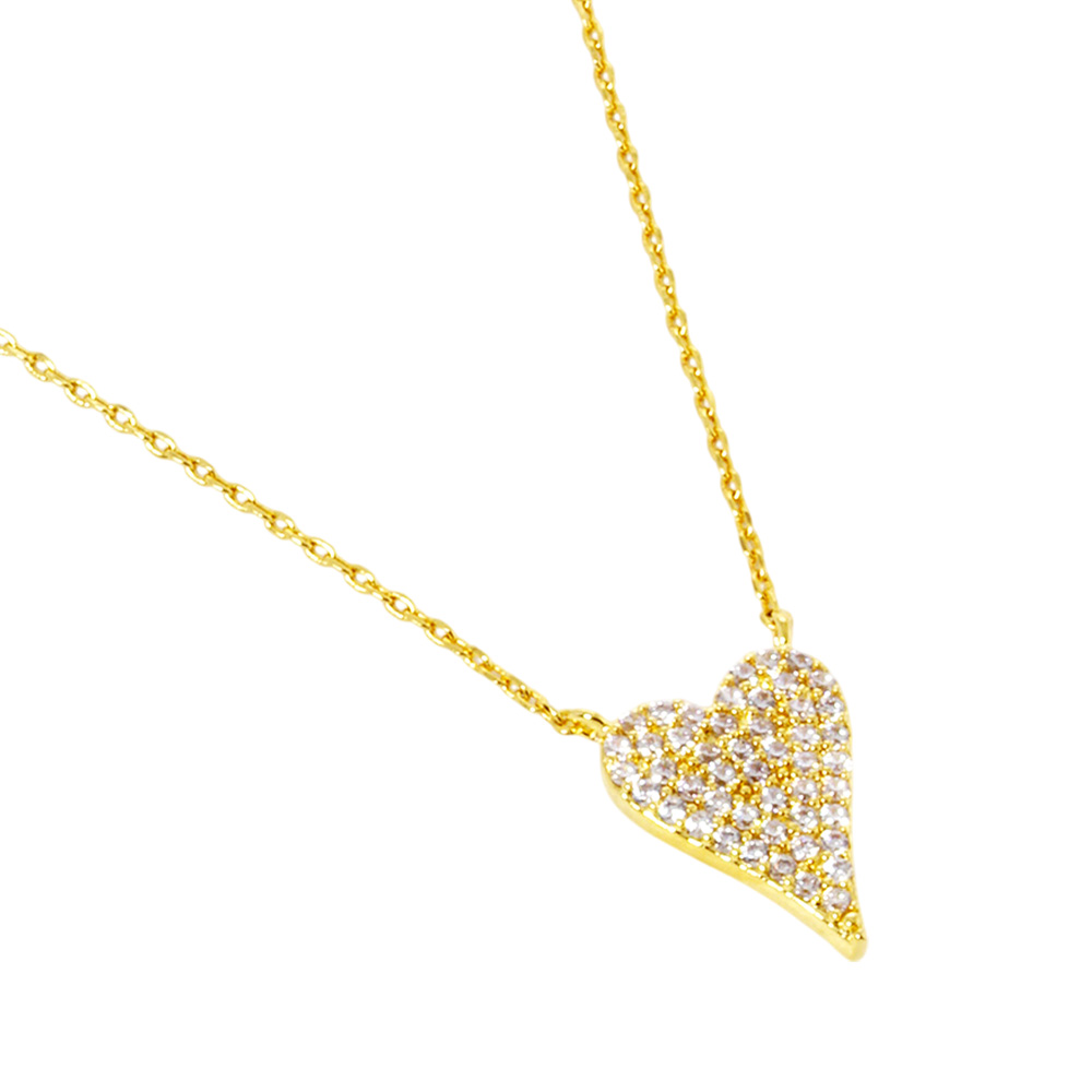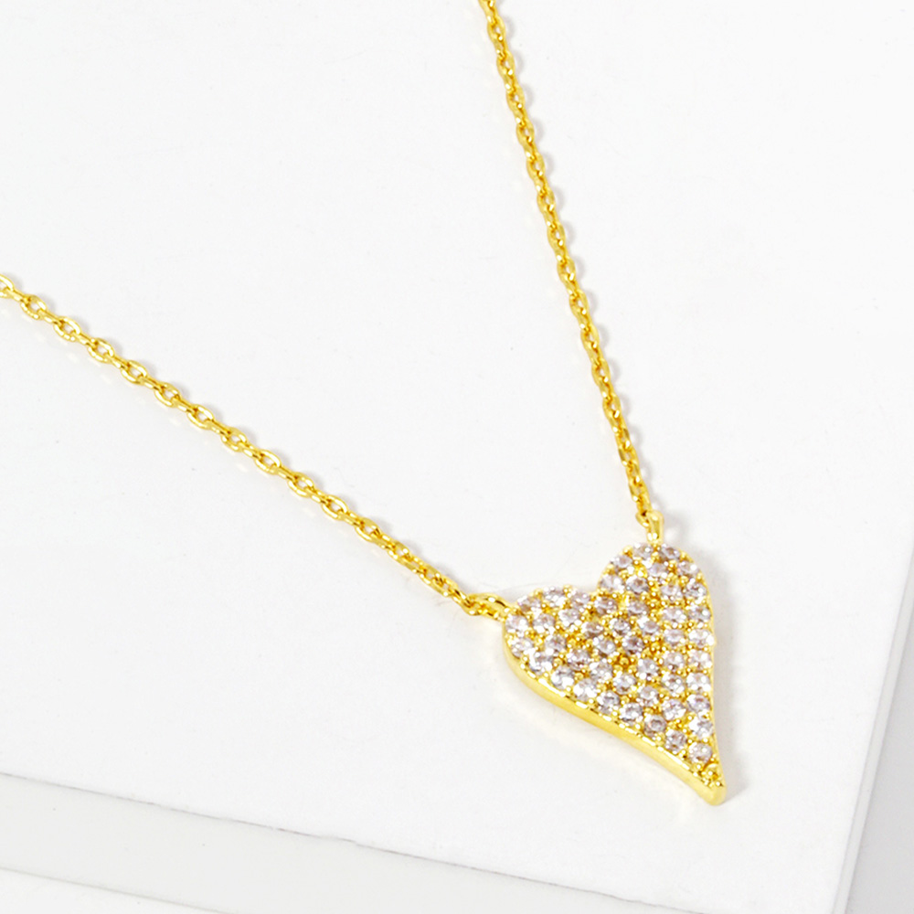 Gold Dipped CZ Stone Paved Heart Pendant Necklace