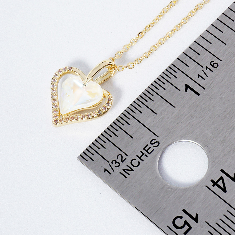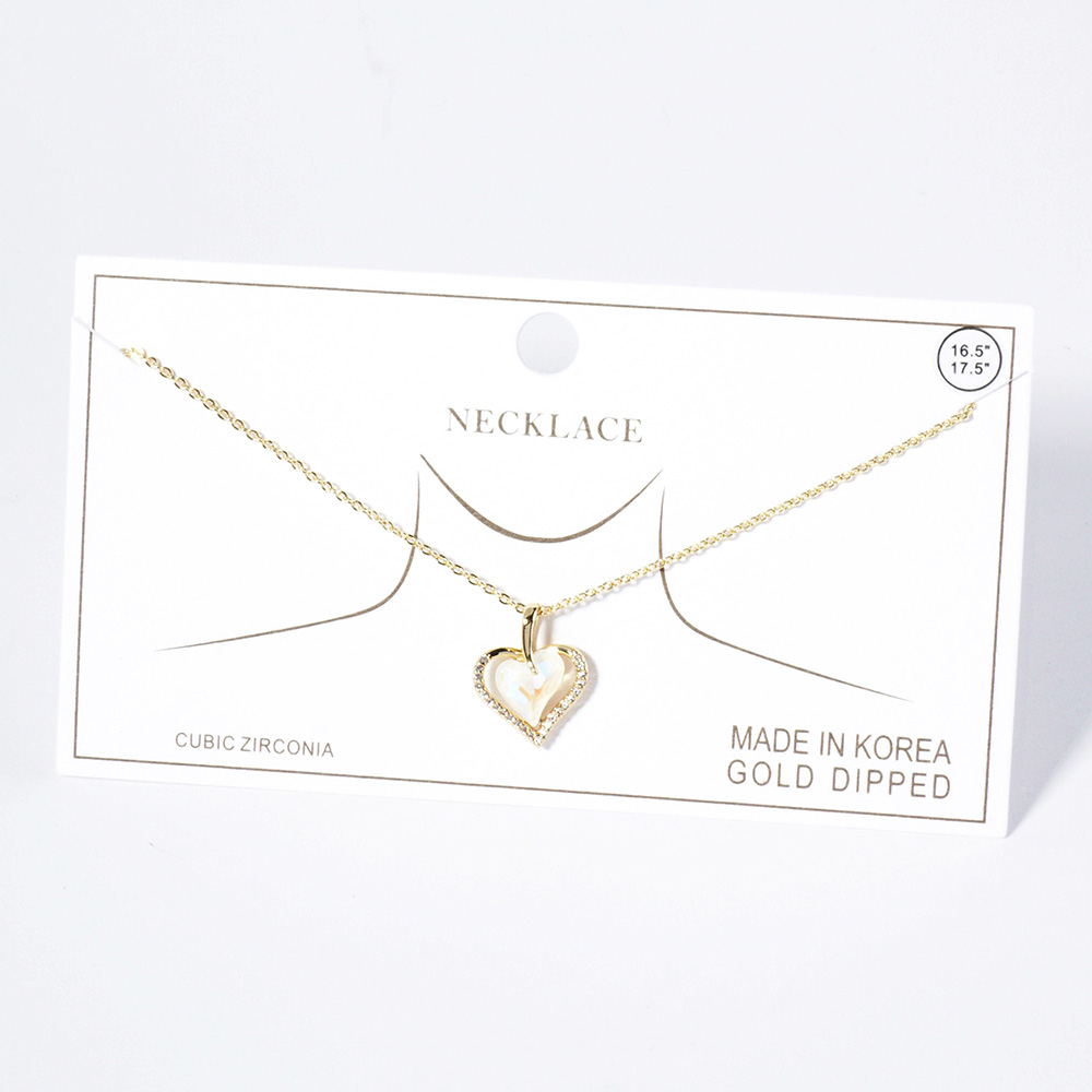 Gold Dipped CZ Stone Paved Heart Stone Pedant Necklace