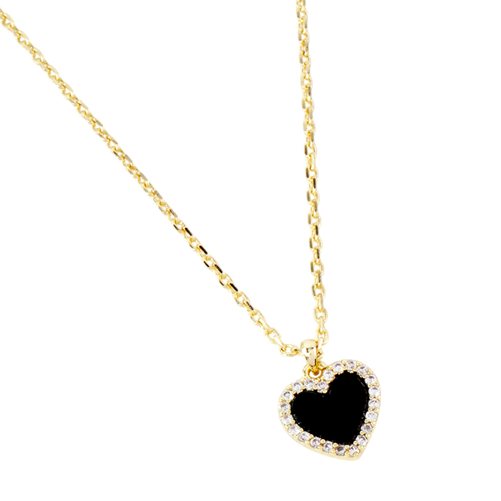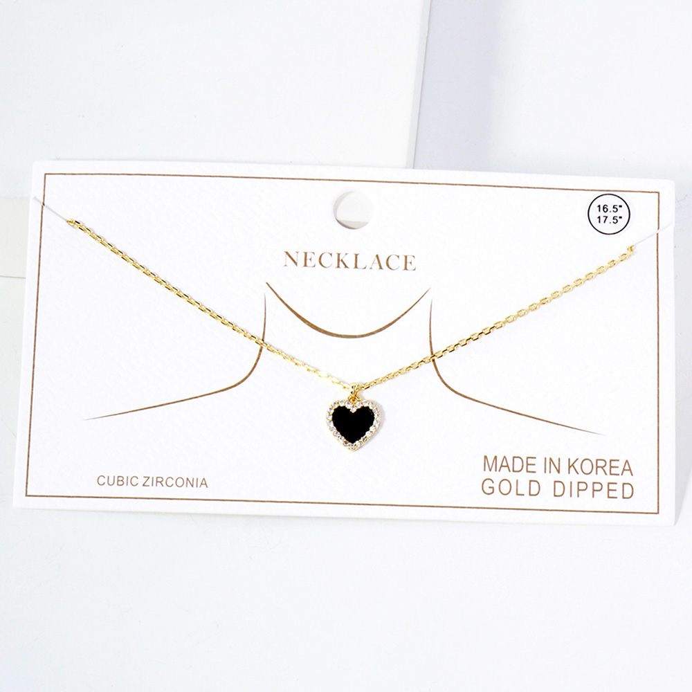 Gold Dipped CZ Stone Paved Rim Heart Pendant Necklace