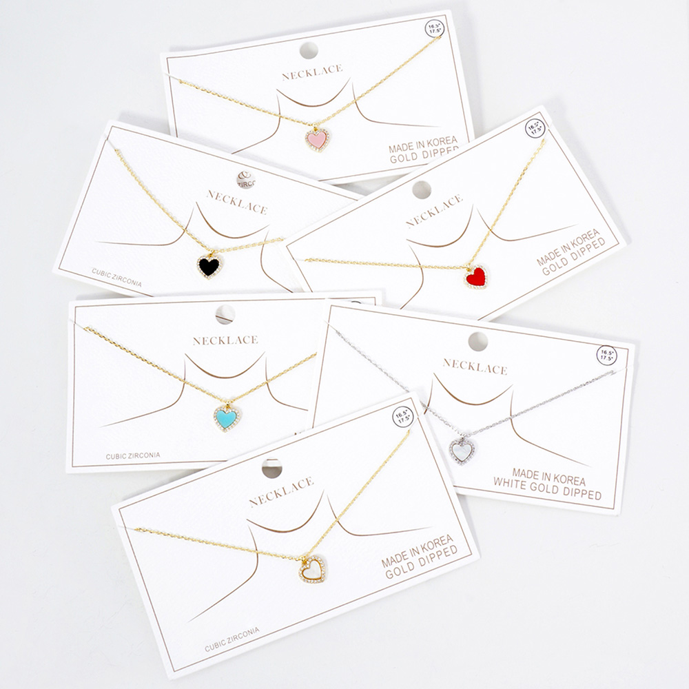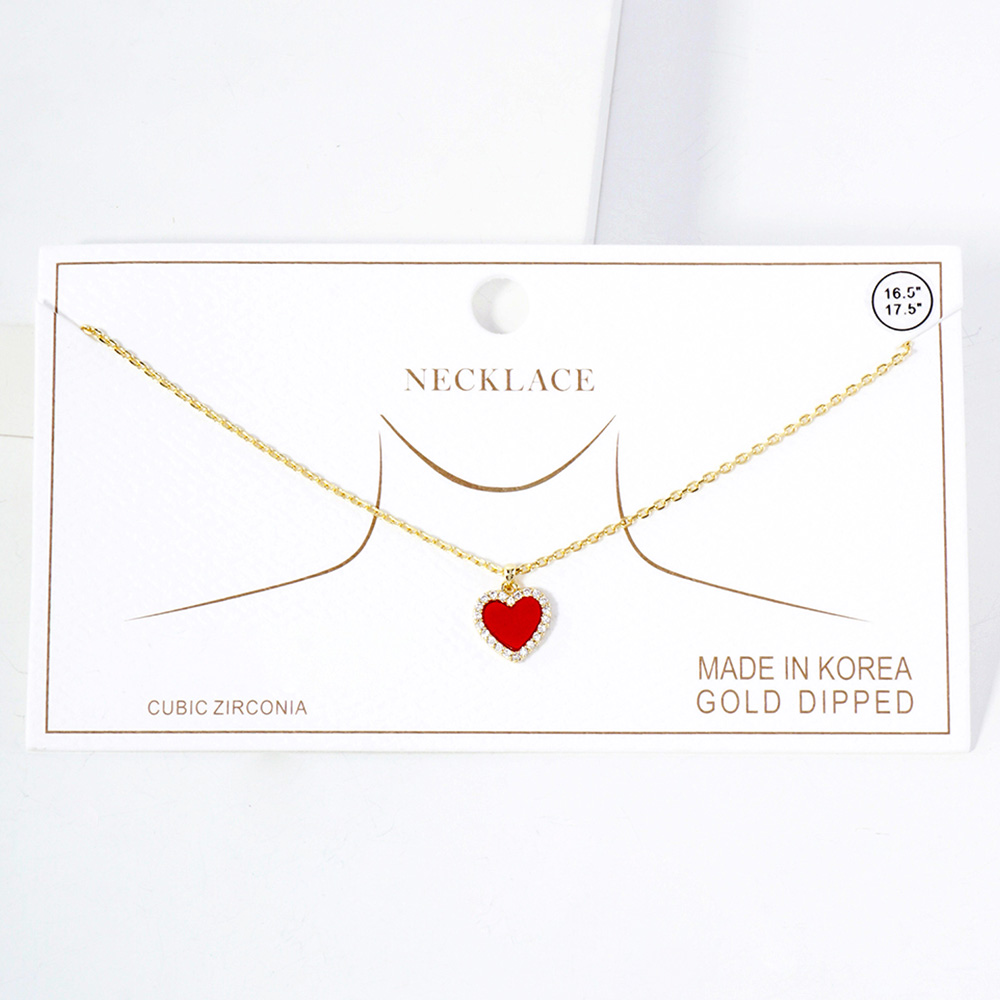 Gold Dipped CZ Stone Paved Rim Heart Pendant Necklace