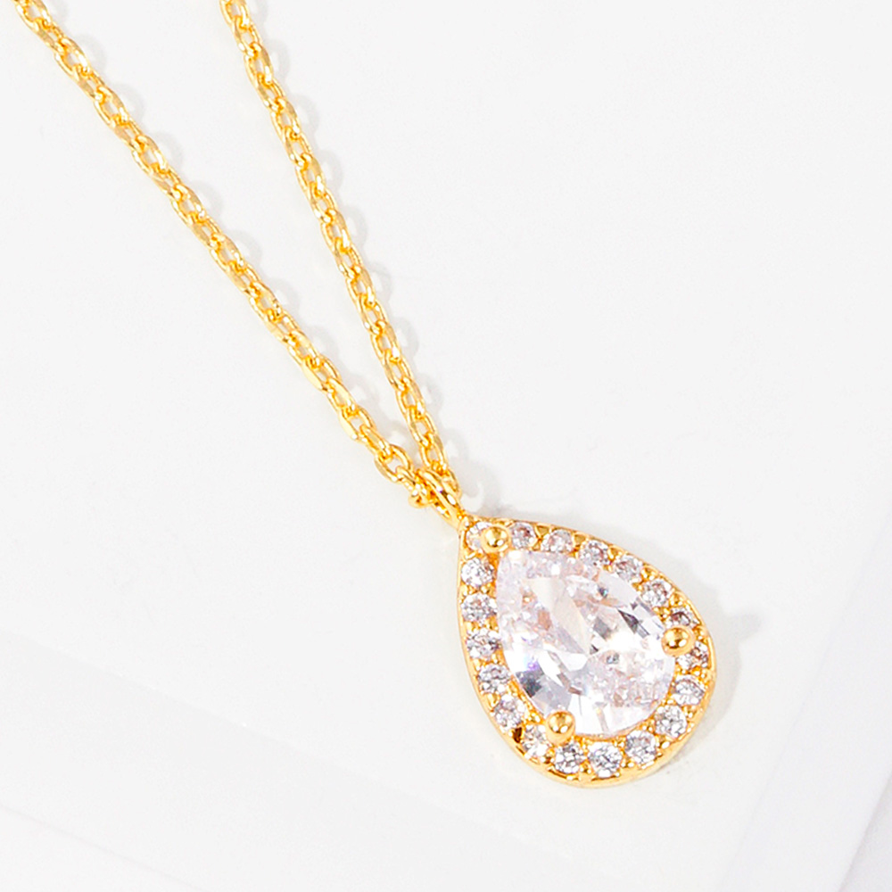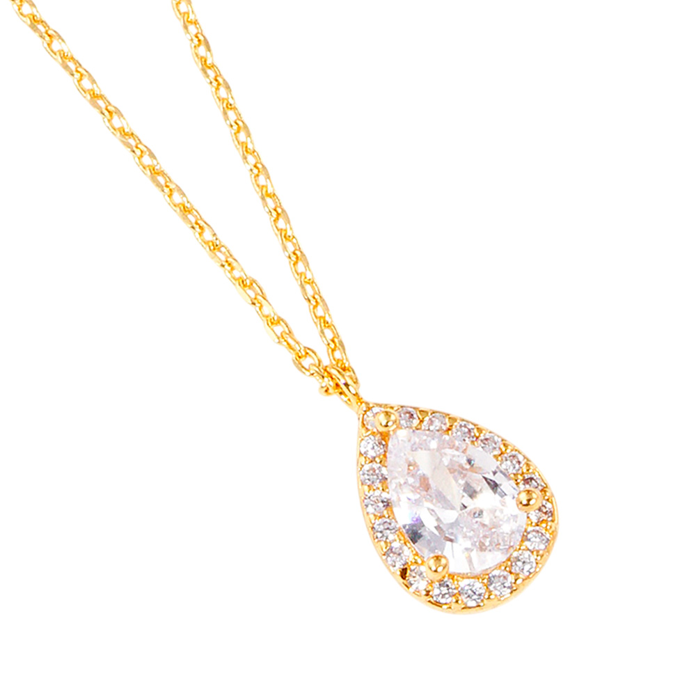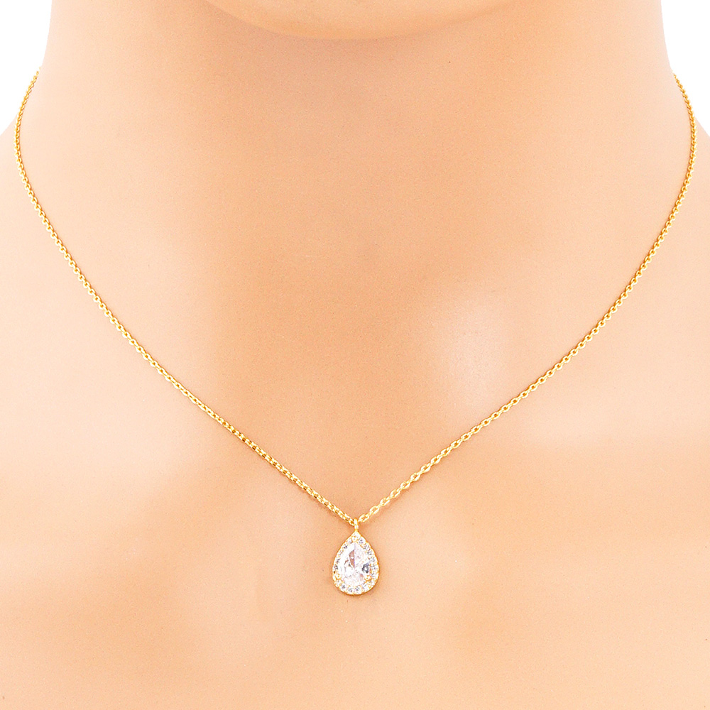 Gold Dipped CZ Teardrop Pendant Necklace