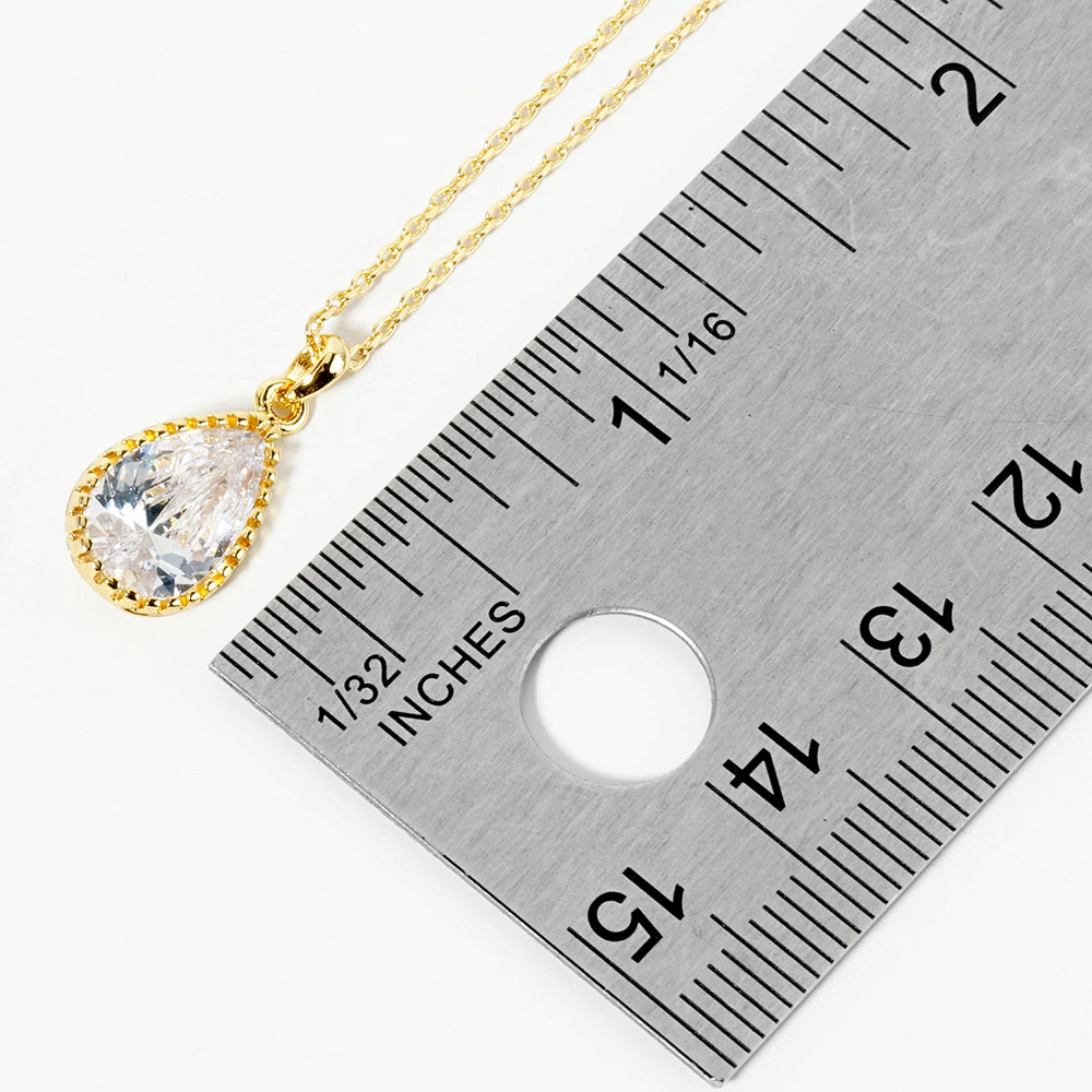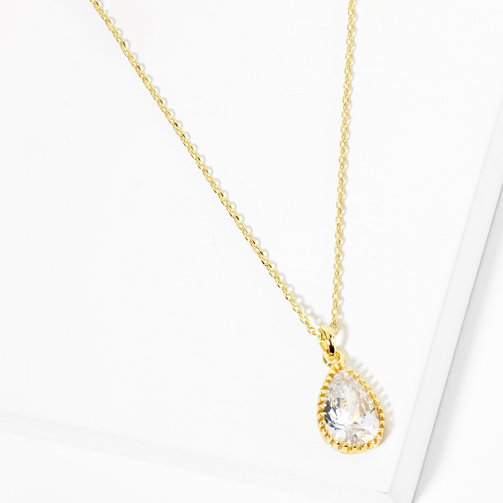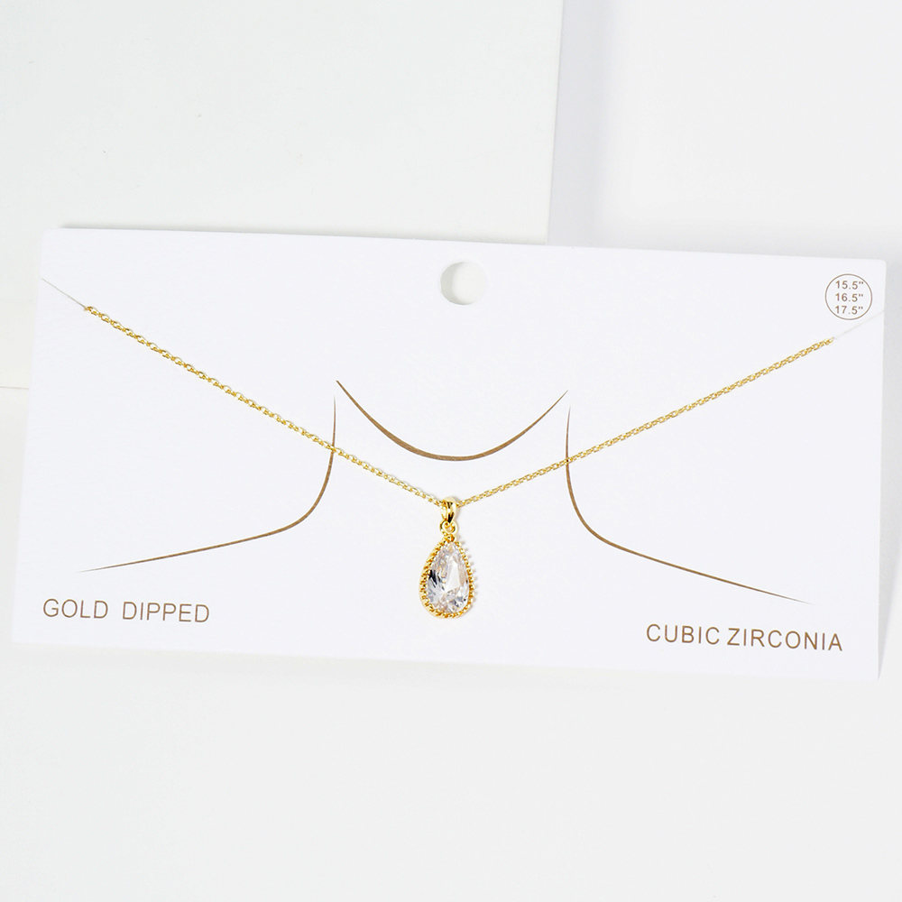 Gold Dipped CZ Teardrop Stone Pendant Necklace