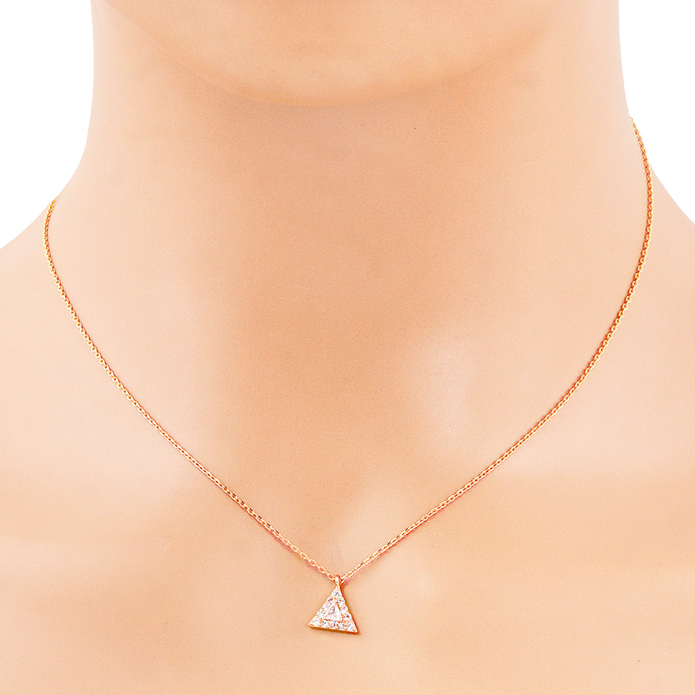 Gold Dipped CZ Triangle Pendant Necklace
