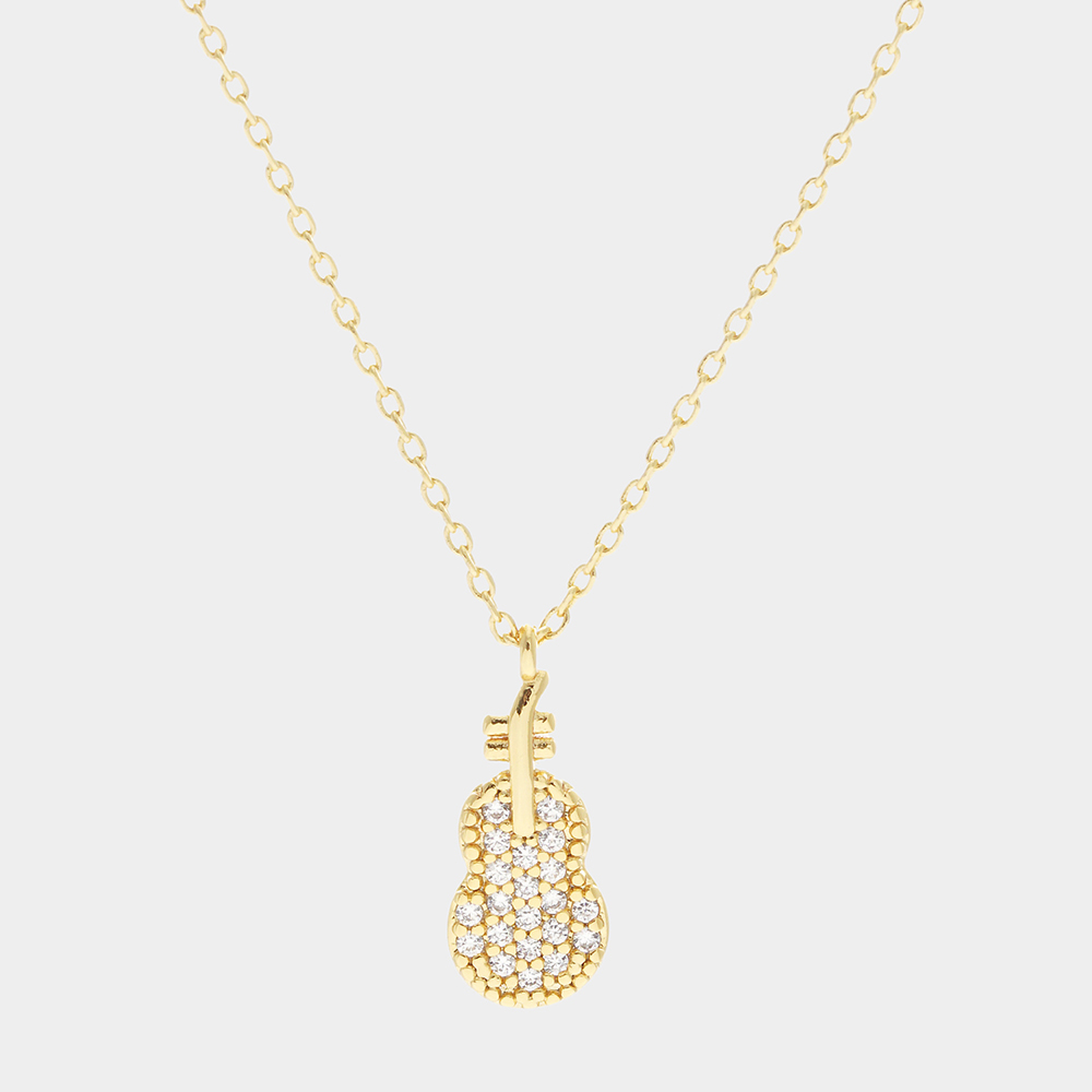 White Gold Dipped CZ Stone Paved Music Note Pendant Necklace