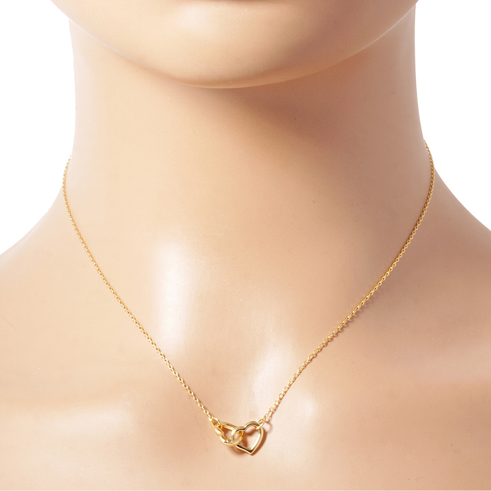Gold Dipped Double Heart Link Pendant Necklace