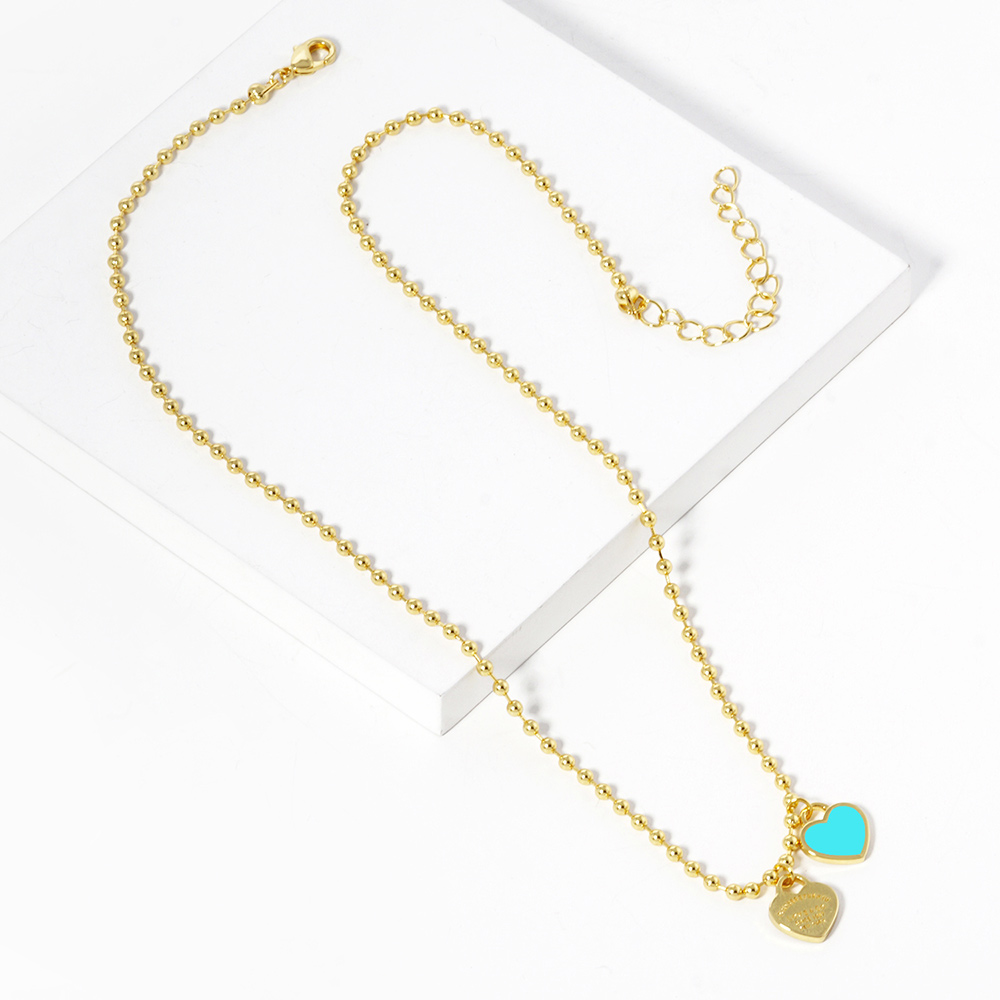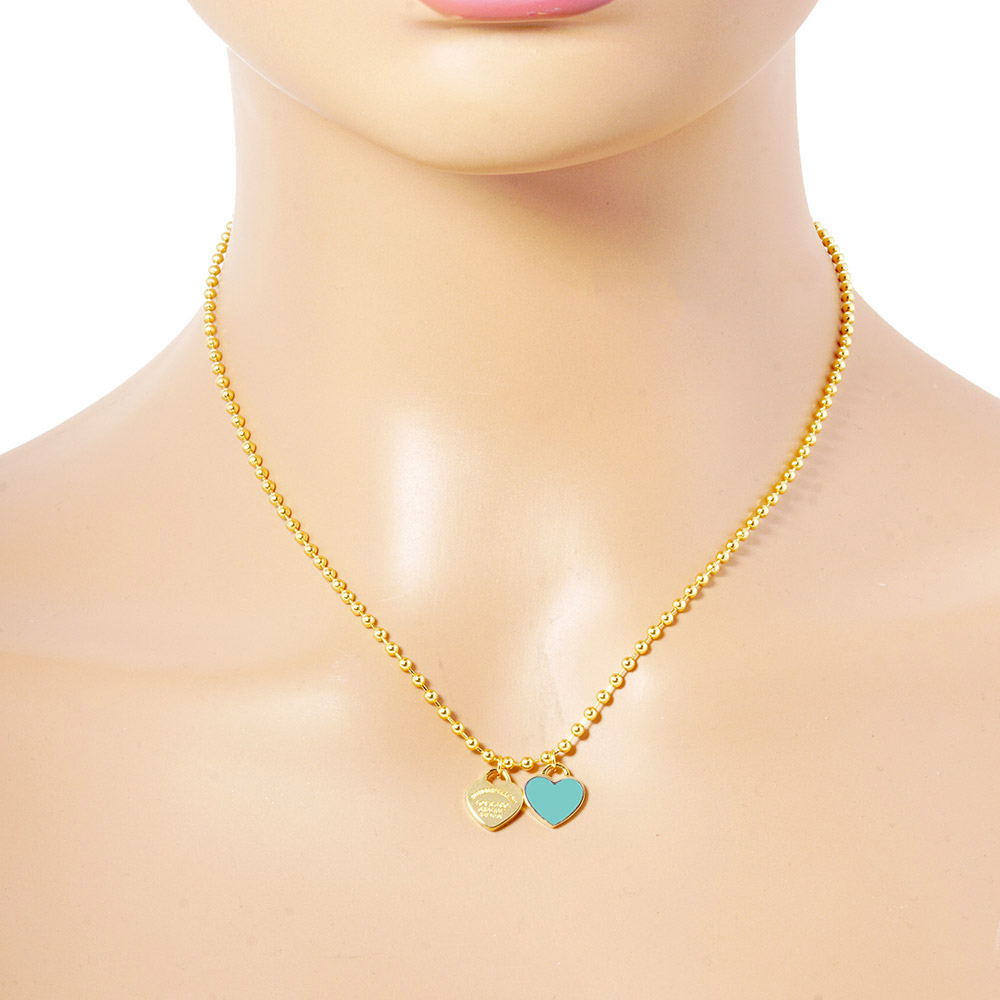 Gold Dipped Double Heart Pendant Bubble Chain Necklace