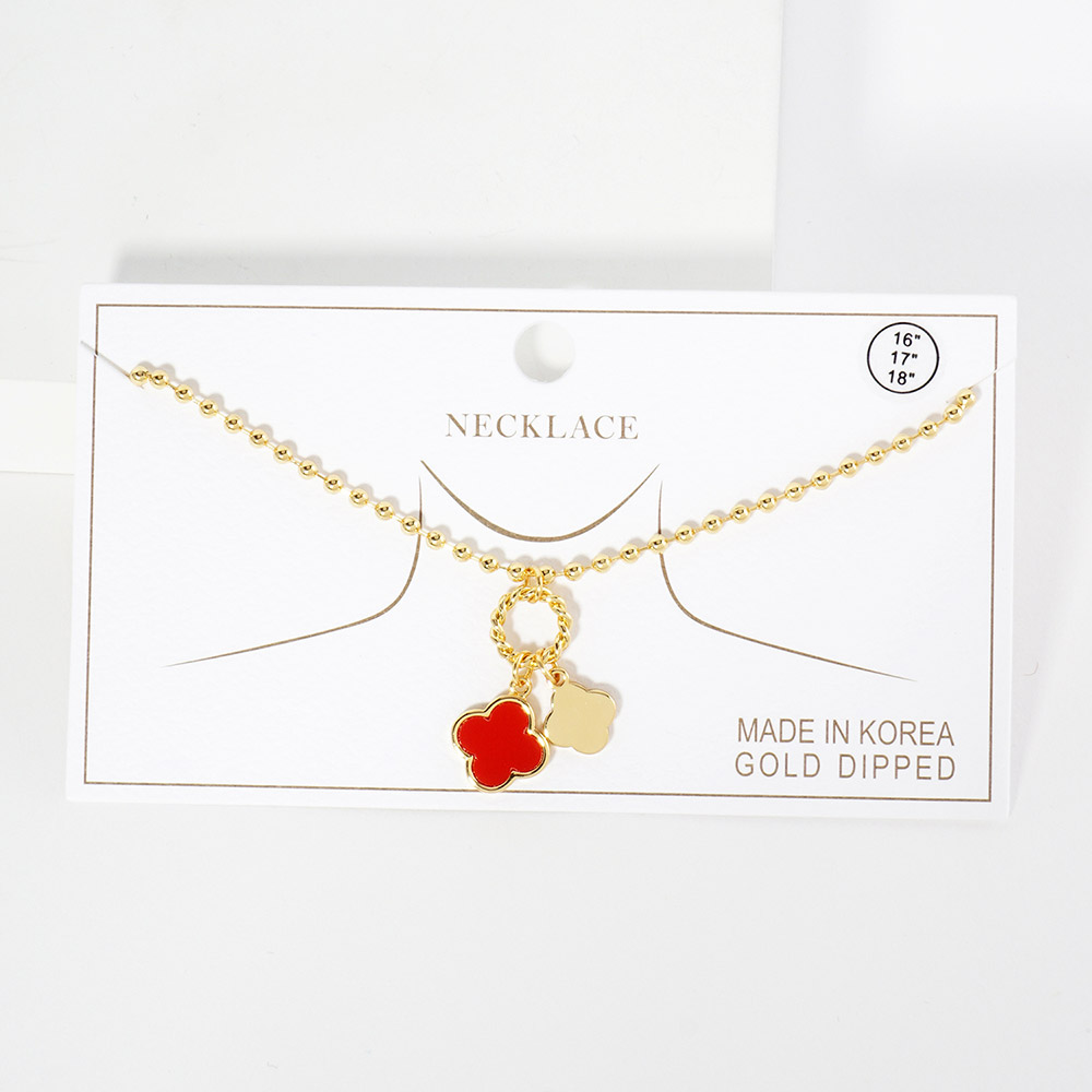 Gold Dipped Double Quatrefoil Pendant Bubble Chain Necklace