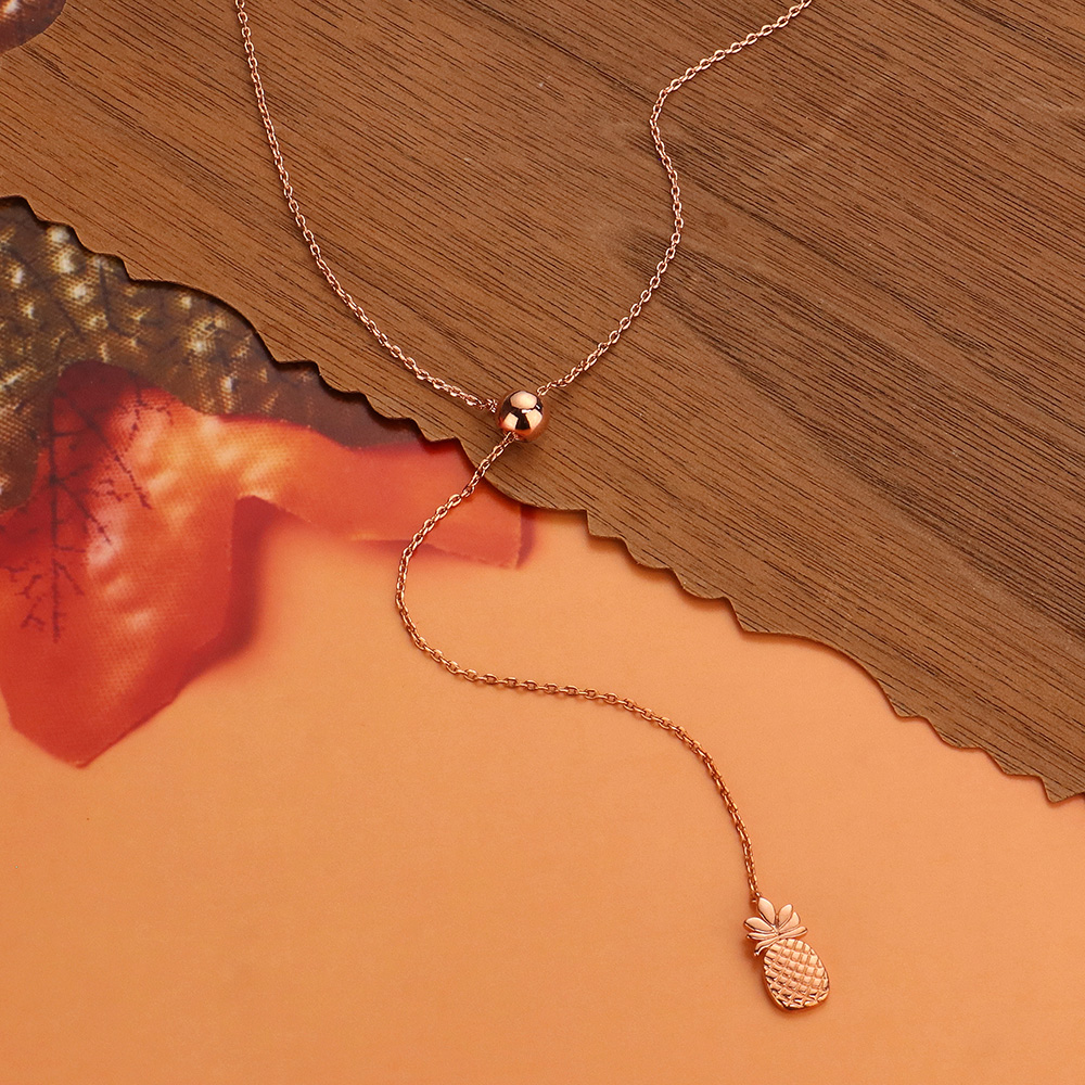 Gold Dipped Drop Metal Pineapple Pendant Y Necklace