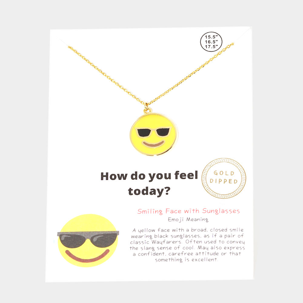 Gold Dipped Emoji Enamel Metal Round Pendant Necklace