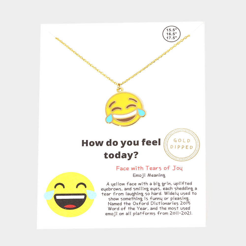 Gold Dipped Emoji Enamel Metal Round Pendant Necklace