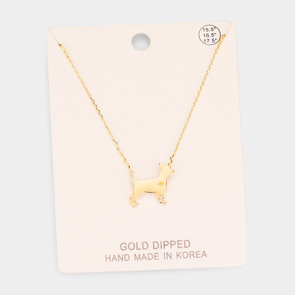 Gold Dipped French Boston Terrier Dog Heart Pendant Necklace