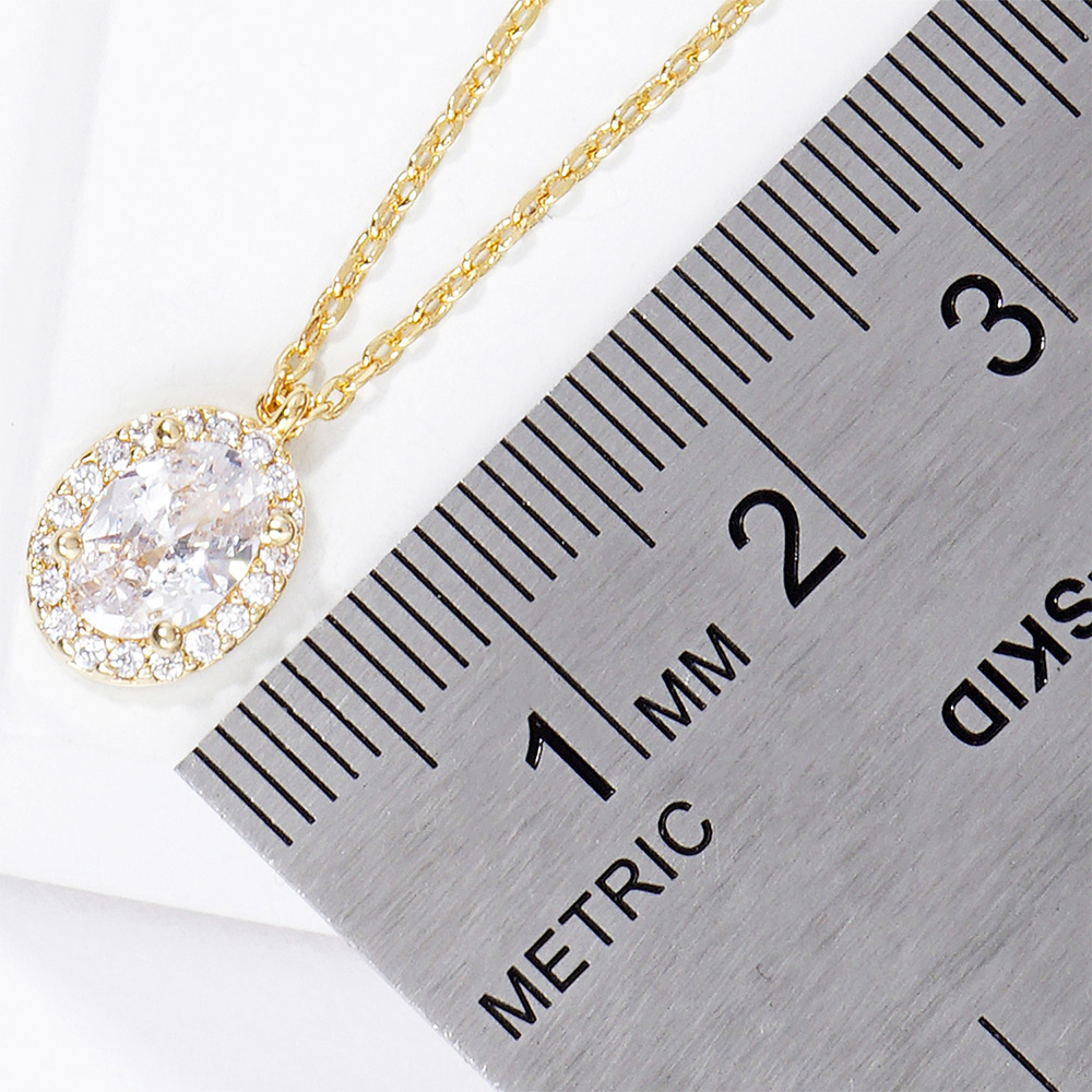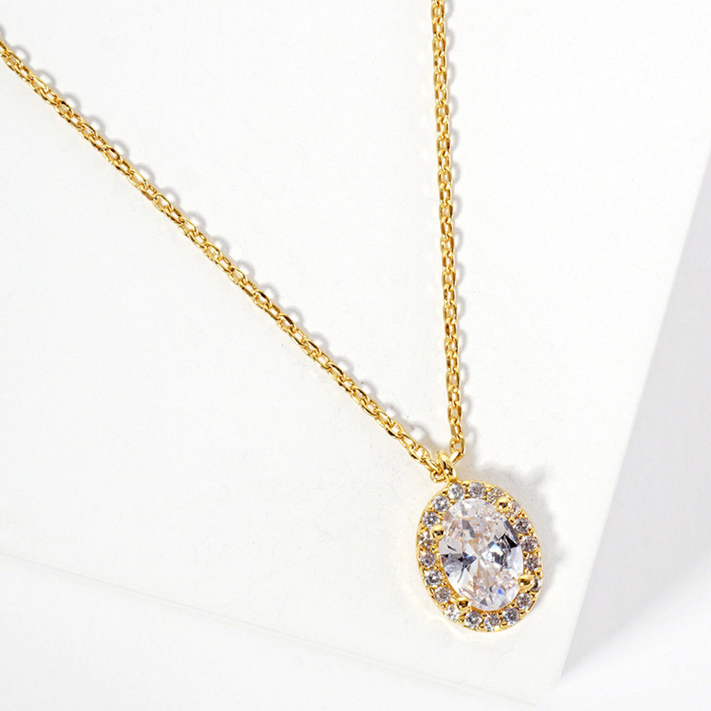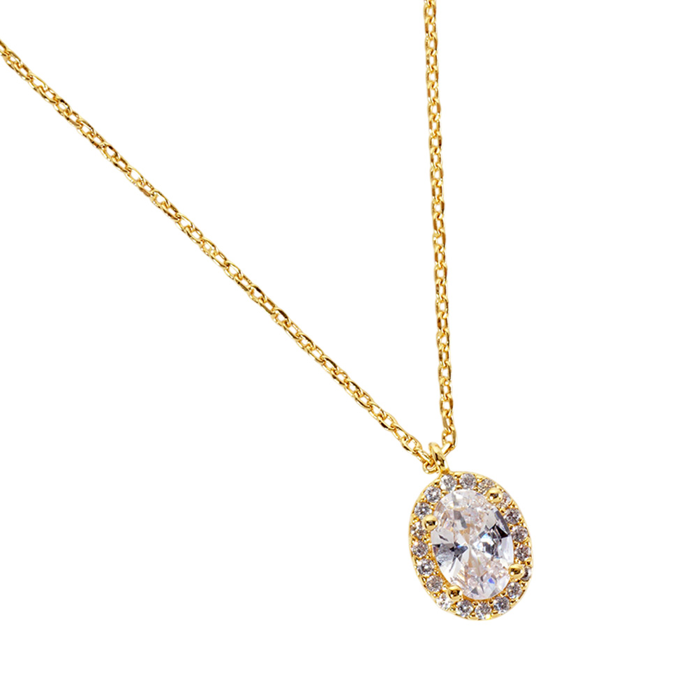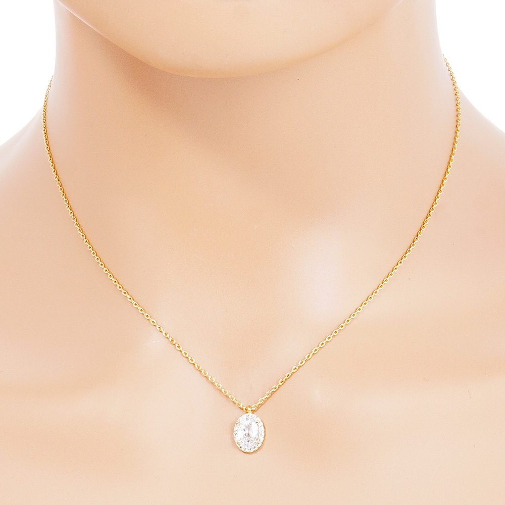 Gold Dipped Oval CZ Stone Pendant Necklace