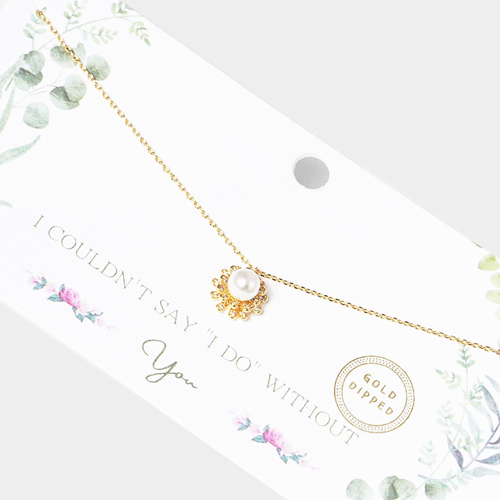 Gold Dipped Pearl Accented CZ Trimmed Pendant Necklace