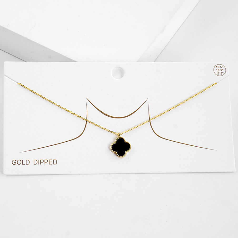 Gold Dipped Mother of Pearl Quatrefoil Pendant Necklace