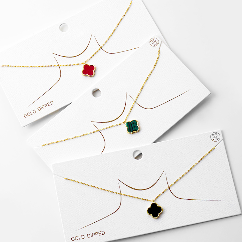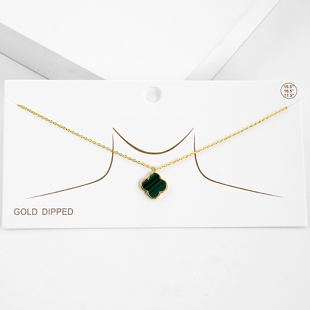 Gold Dipped Mother of Pearl Quatrefoil Pendant Necklace