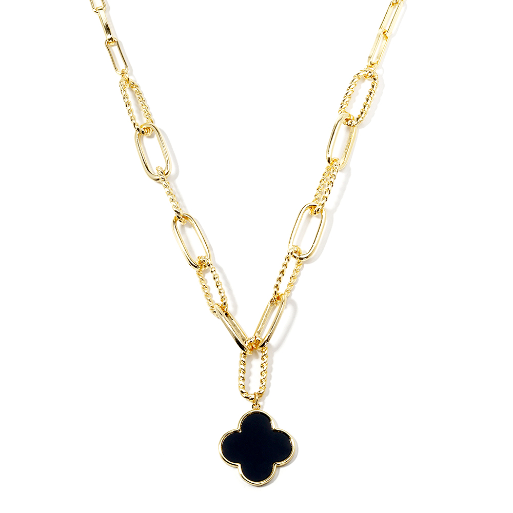 Gold Dipped Quatrefoil Pendant Link Necklace