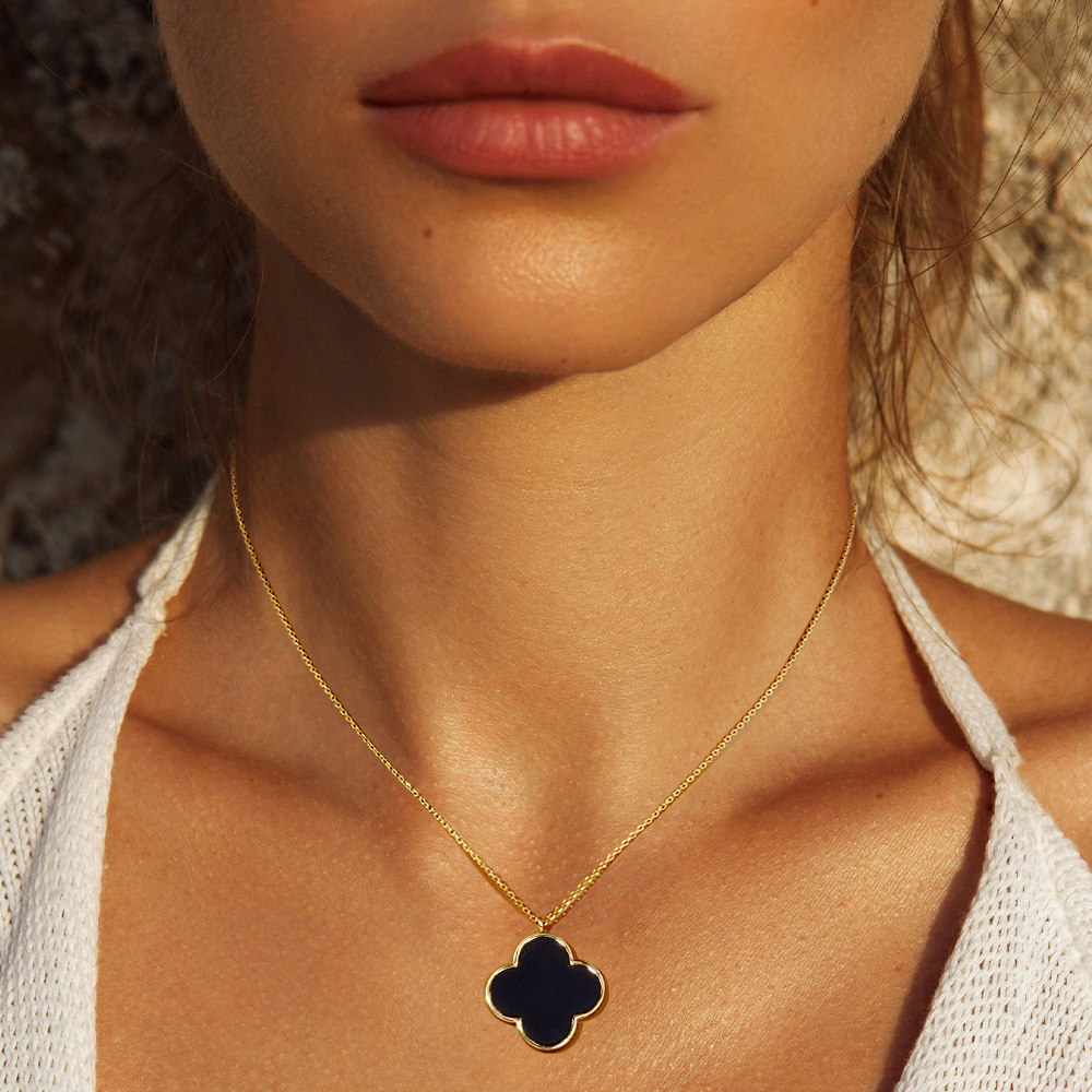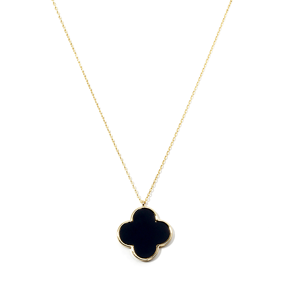 Gold Dipped Mother of Pearl Quatrefoil Pendant Necklace