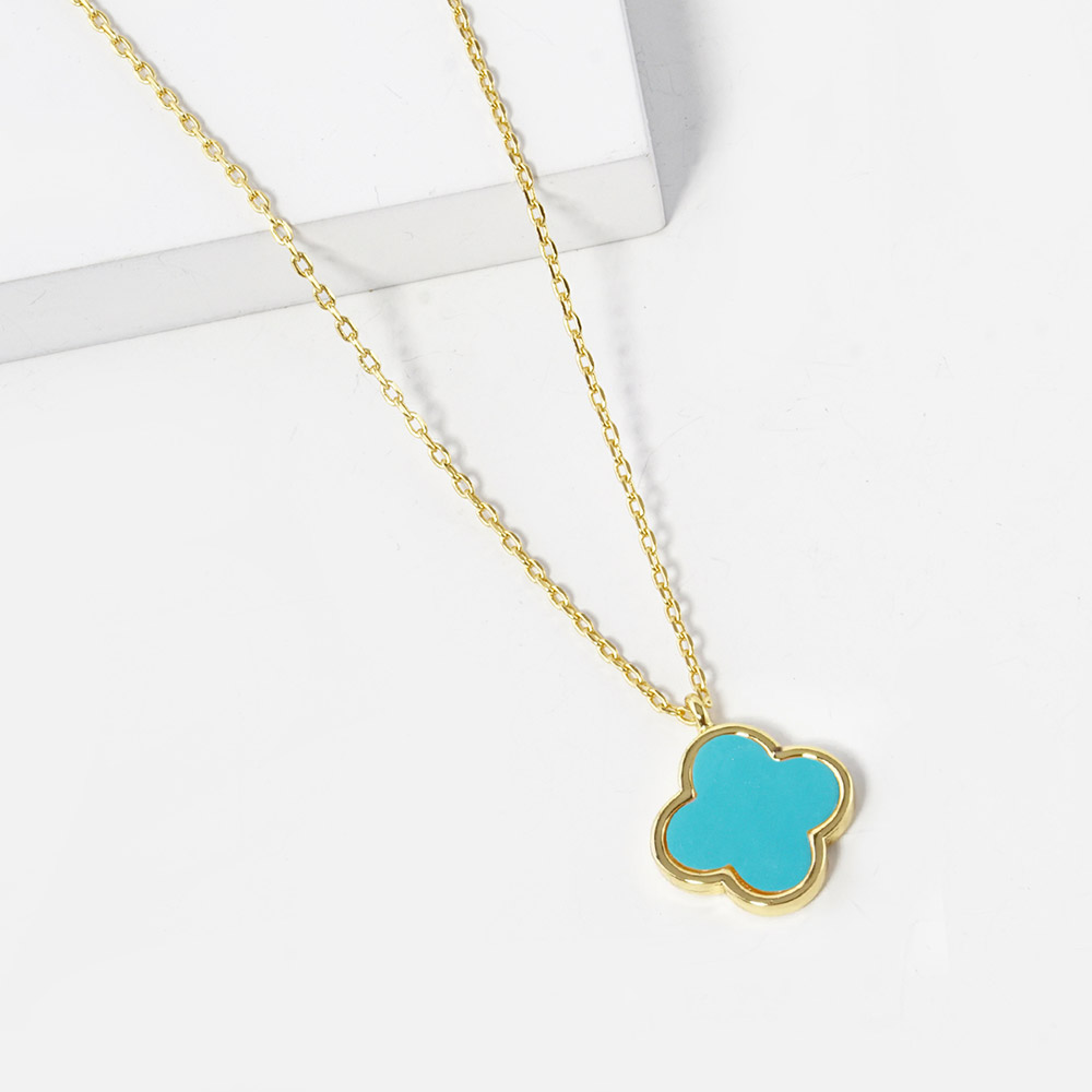 Gold Dipped Mother of Pearl Quatrefoil Pendant Necklace