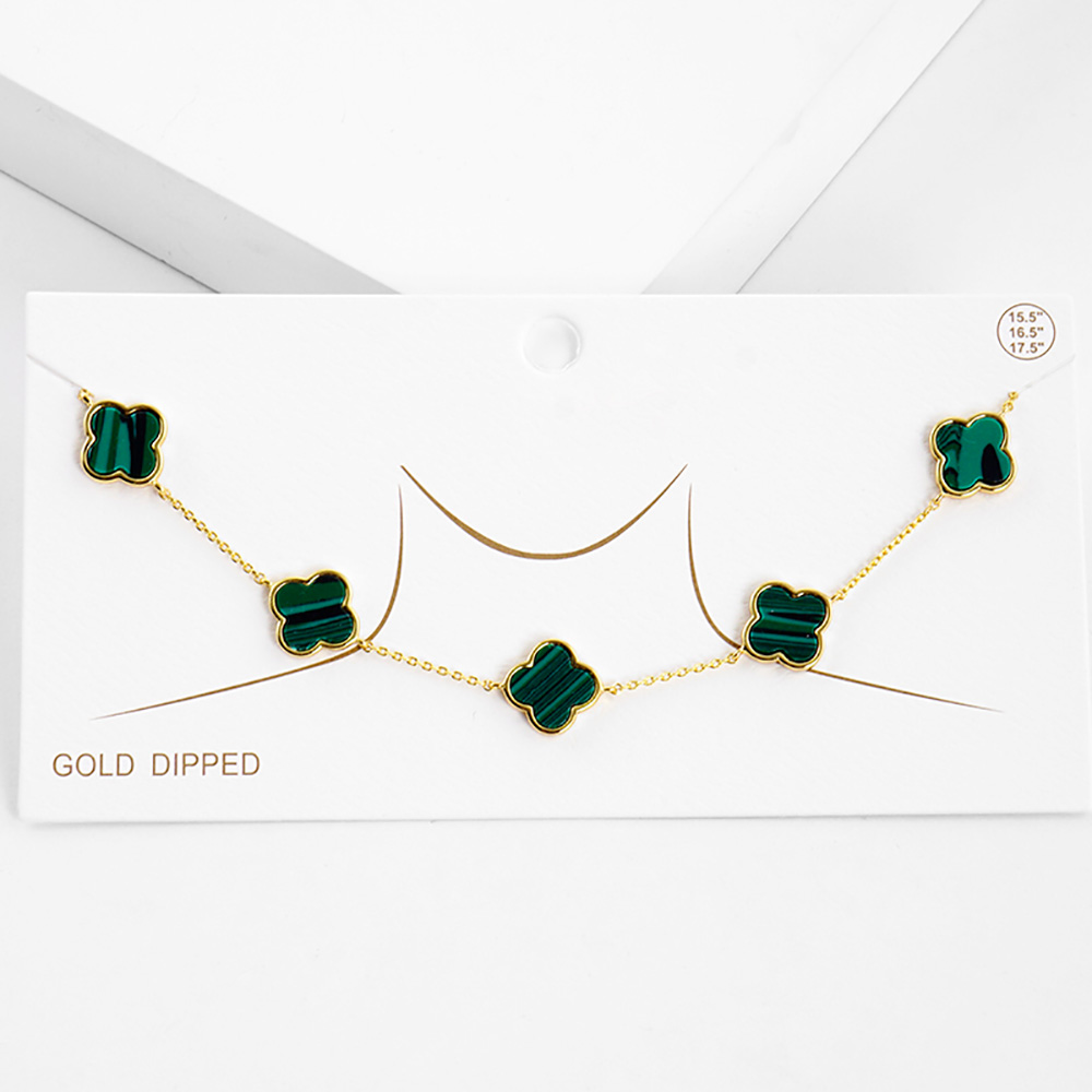 Gold Dipped Mother of Pearl Quatrefoil Station Necklace
