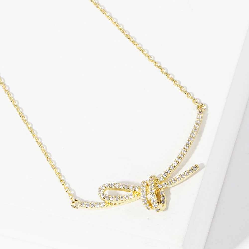 Gold Dipped Rhinestone Knot Pendant Necklace