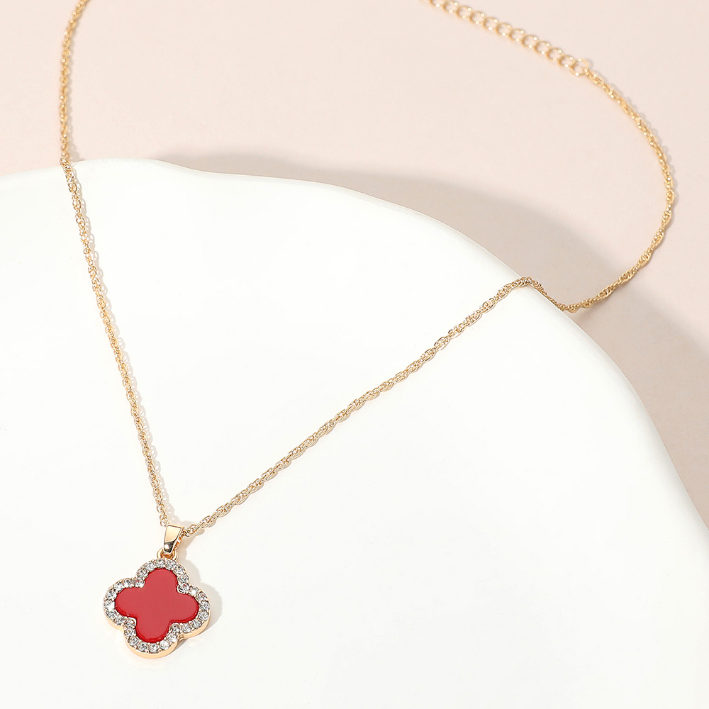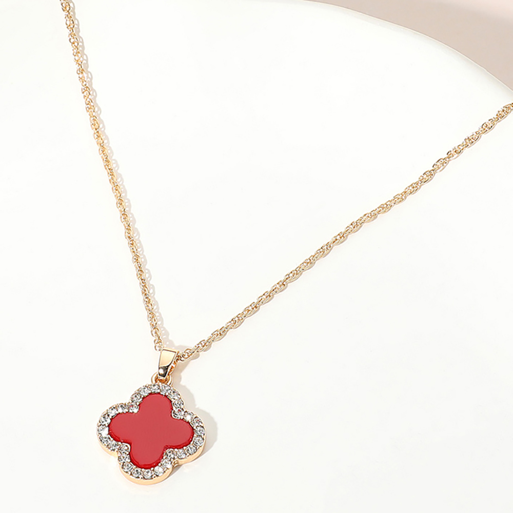 • This radiant quatrefoil outline pendant necklace features a hollow design surrounded by shimmering stones for a touch of elegance. Its delicate chain and timeless silhouette create a versatile accessory that complements both everyday wear and special occasions with effortless charm.