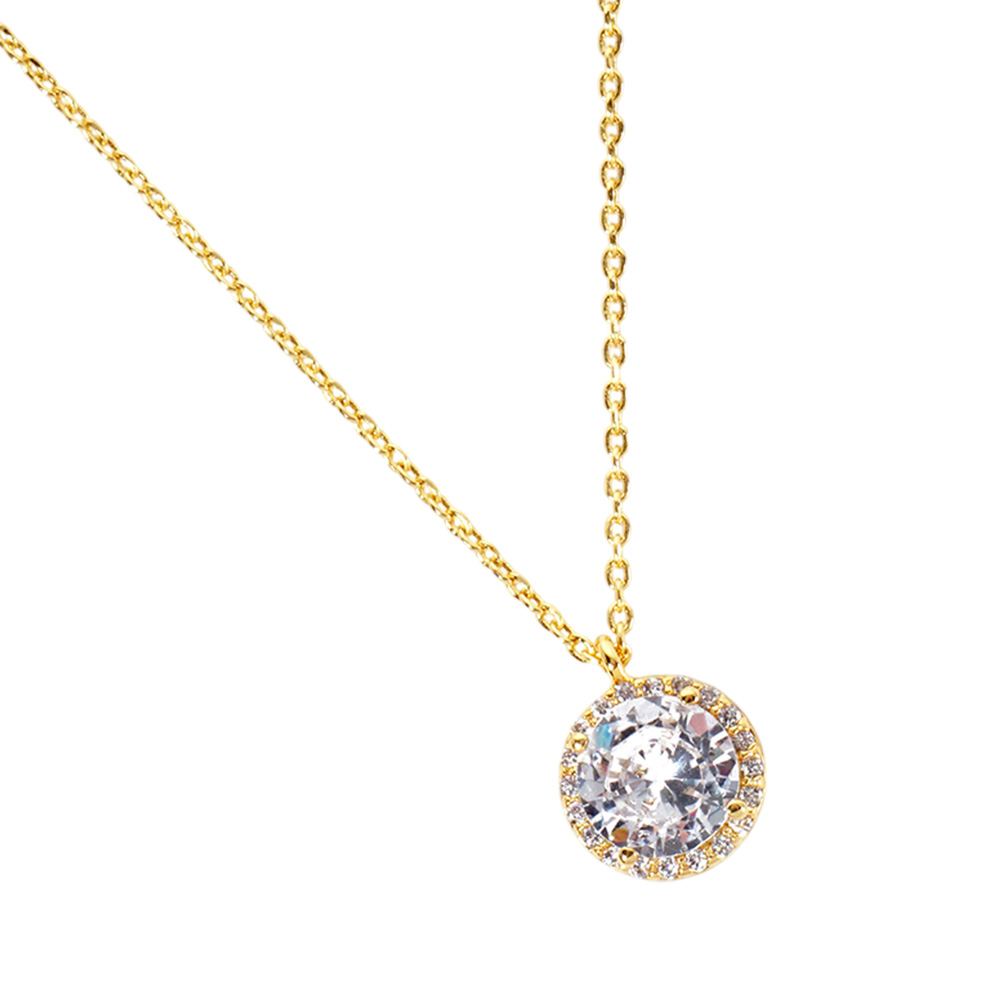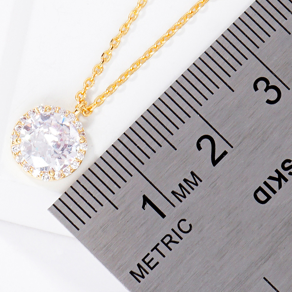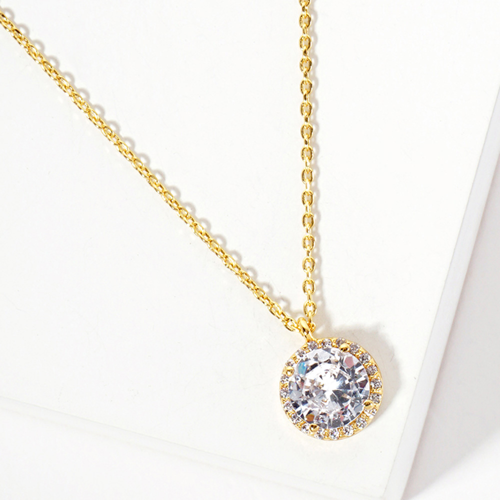 White Gold Dipped Round CZ Stone Pendant Necklace