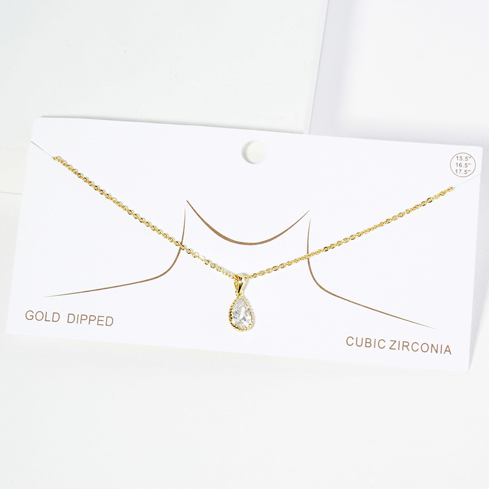 Gold Dipped Teardrop CZ Stone Pendant Necklace